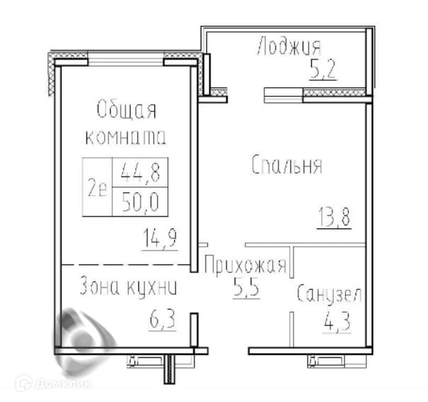 Общая площадь 50 м2