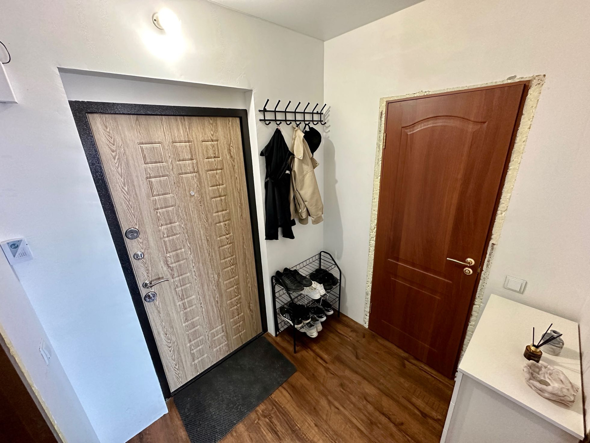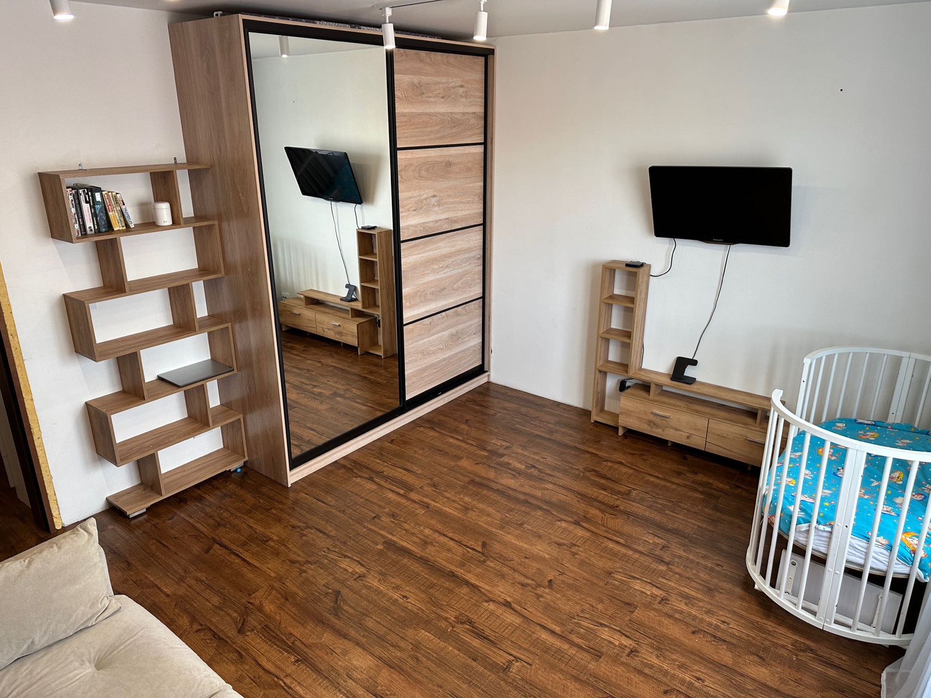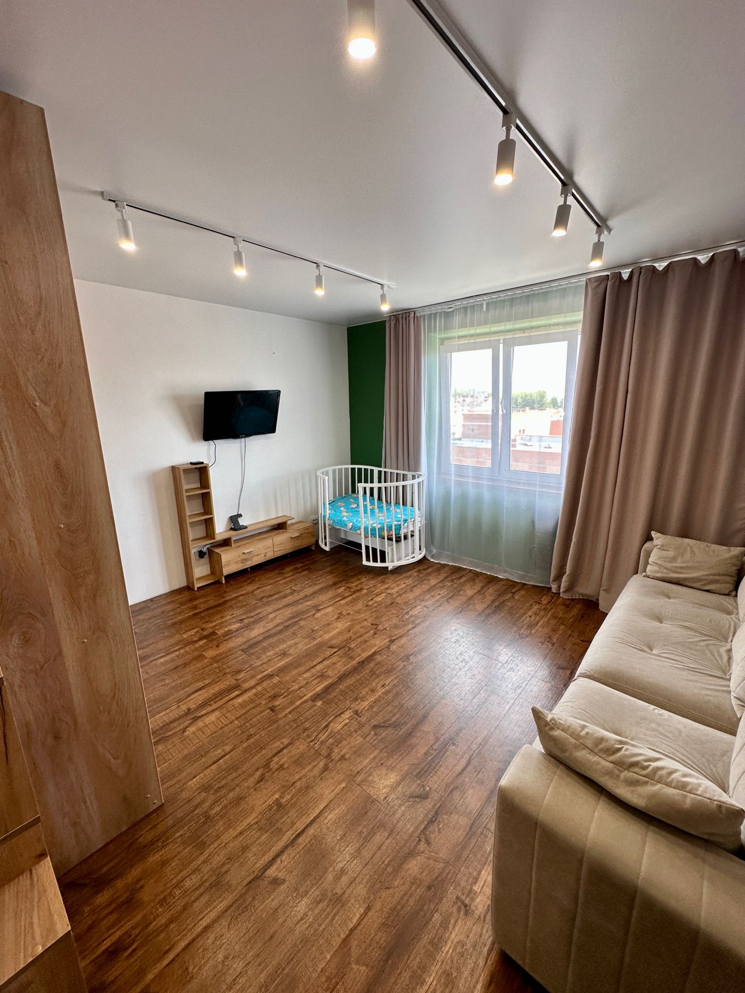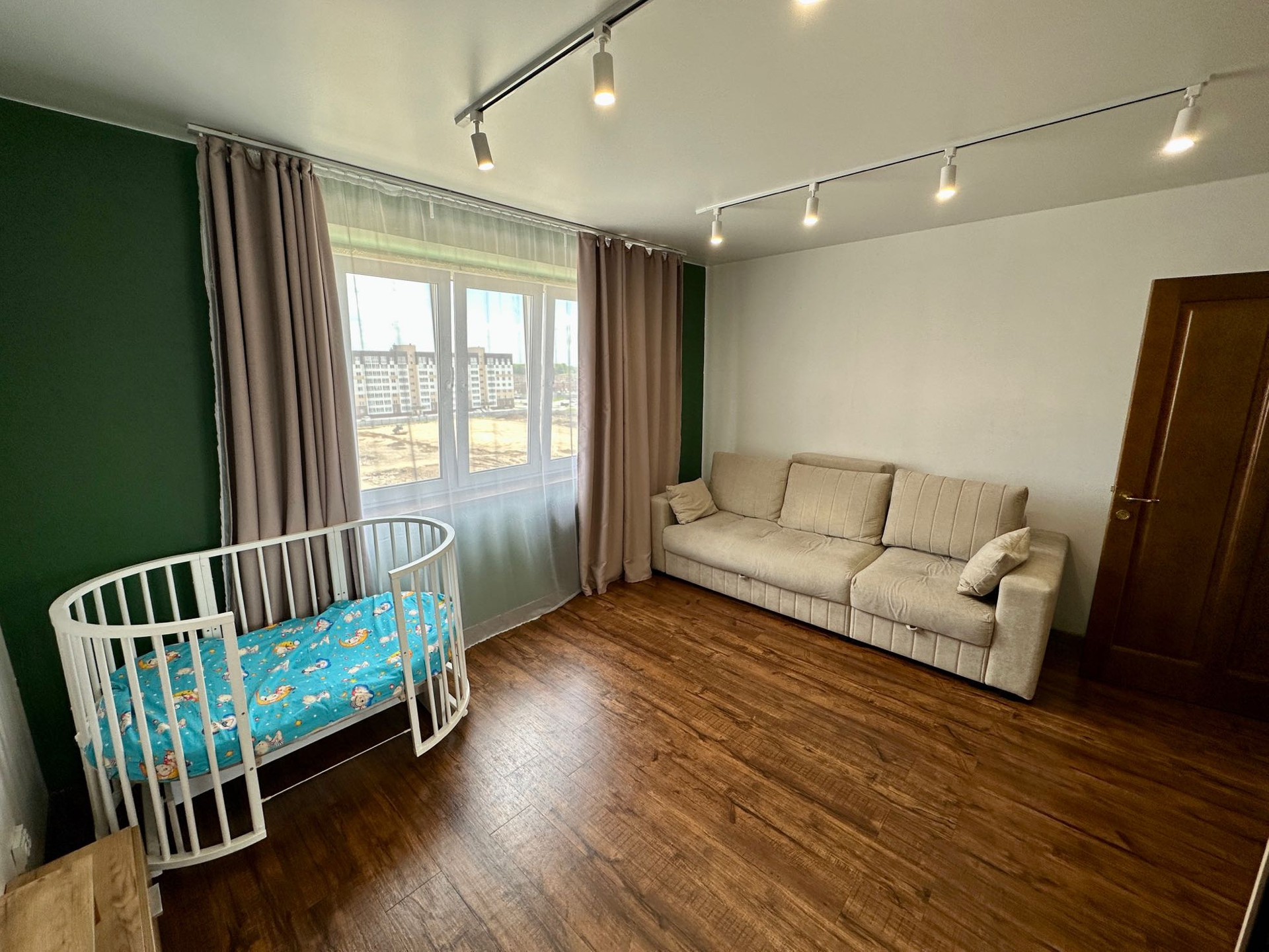 В квартире остаётся все, кроме холодильника, стиральной машины, телевизора и дивана в кухне-гостиной.