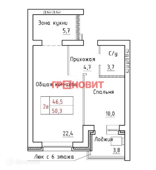 Общая площадь 50.3 м2