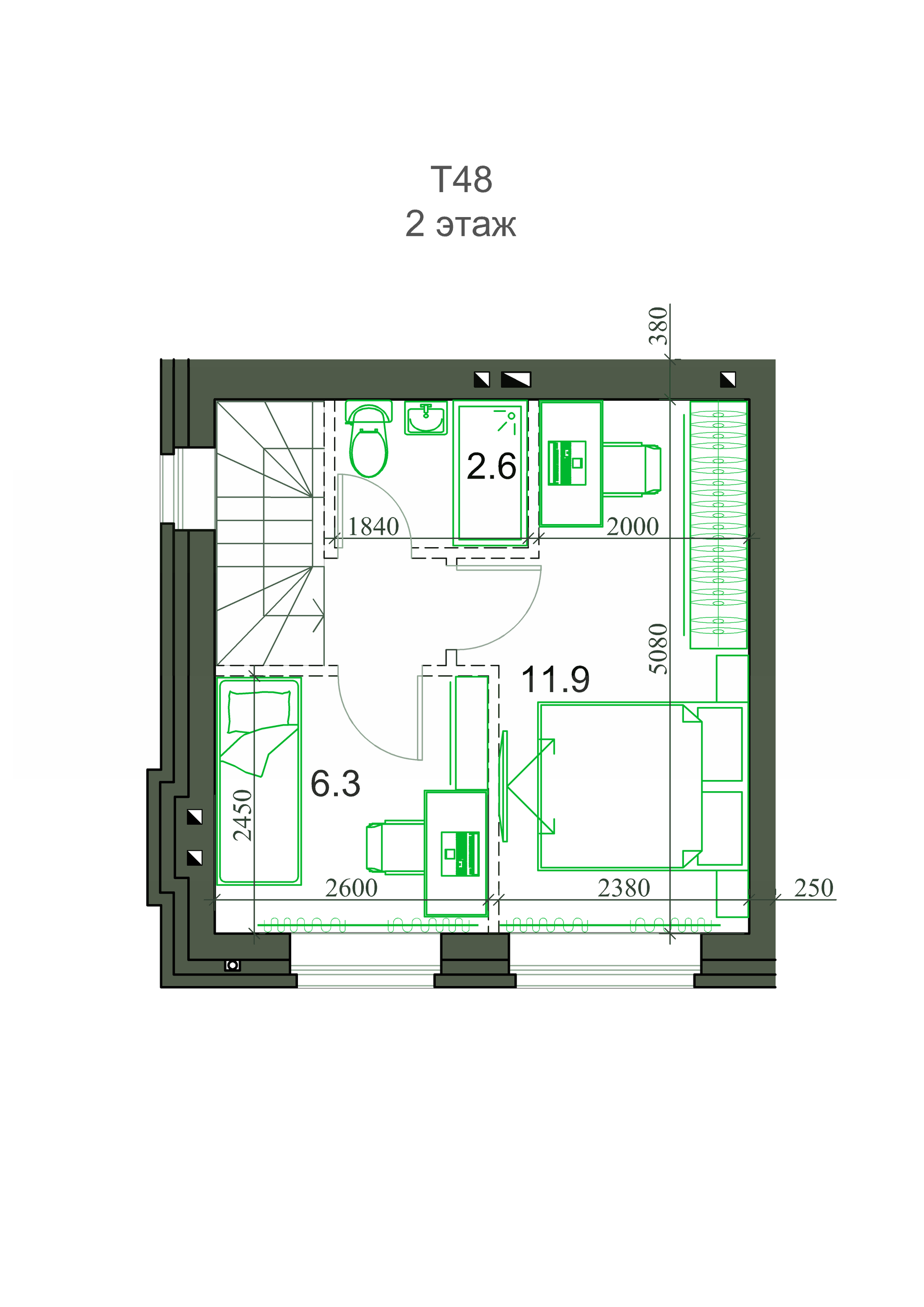 2-этажный таунхаус, 48.69 м2, на продажу в поселке Элитном