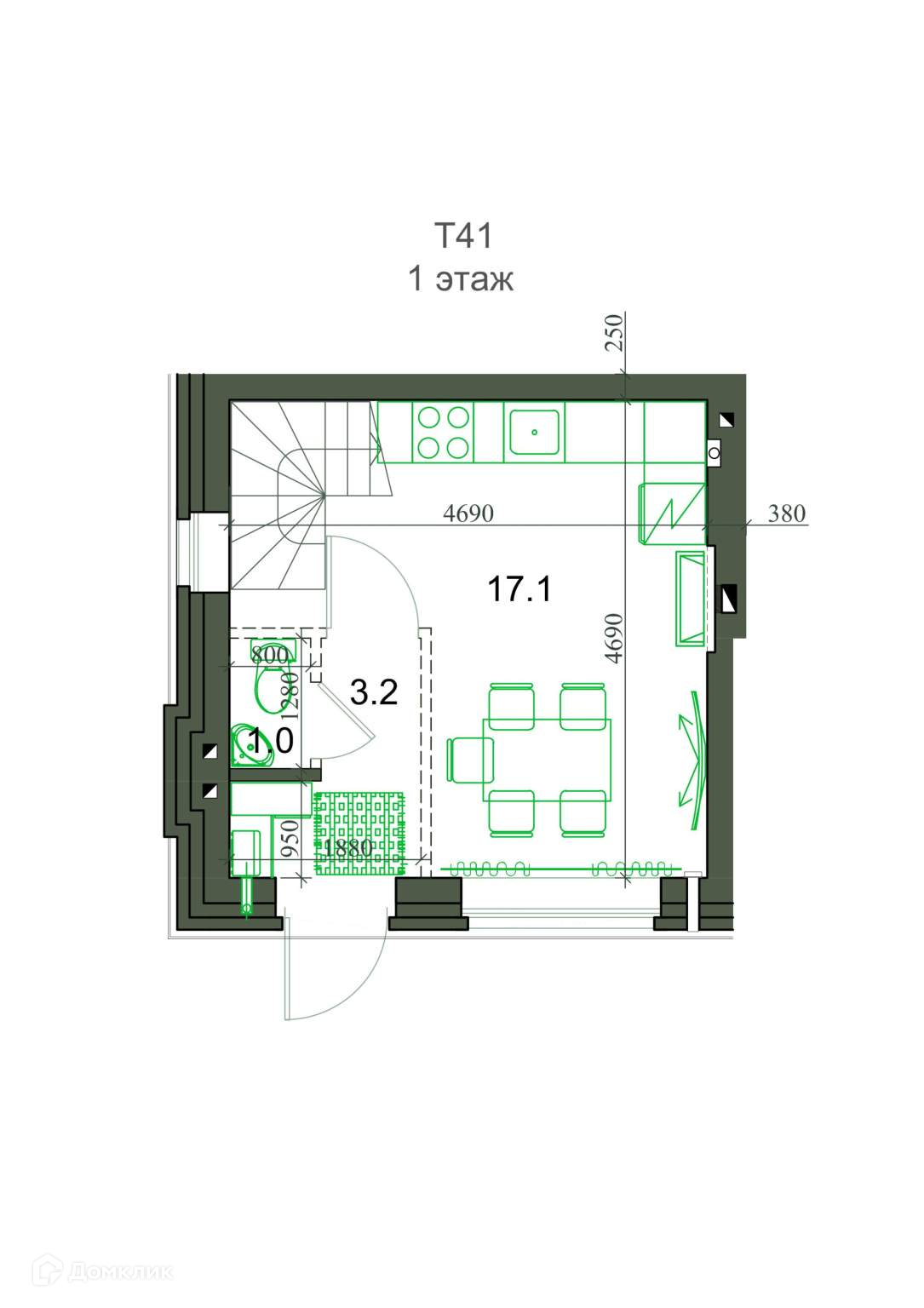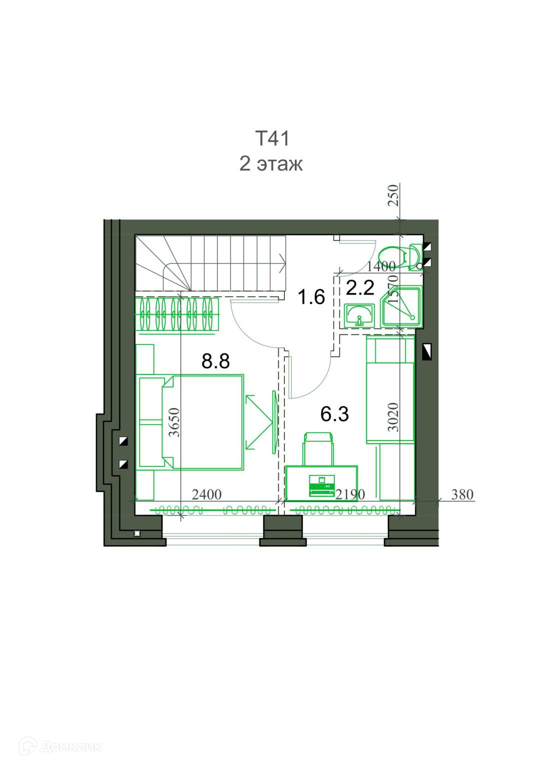 Общая площадь 41 м2
