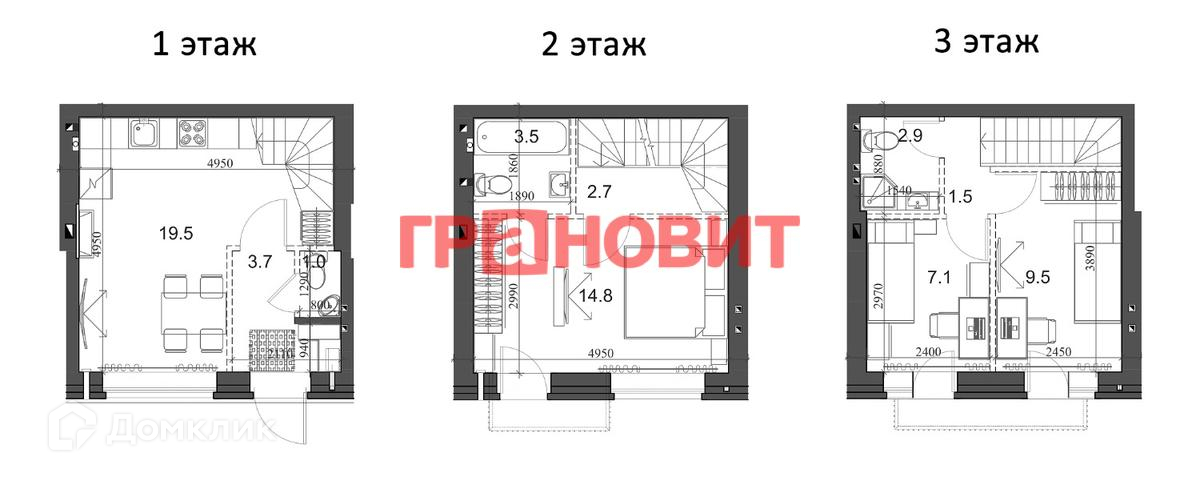 3-этажный таунхаус, 67.4 м2, на продажу в поселке Элитном, микрорайон Берёзки, 183