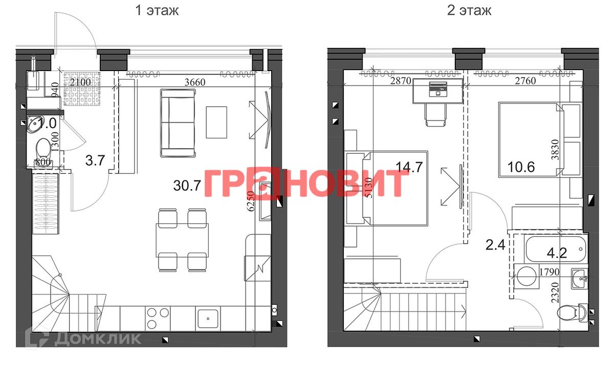 2-этажный таунхаус, 68.08 м2, на продажу в поселке Элитном, микрорайон Берёзки, 173