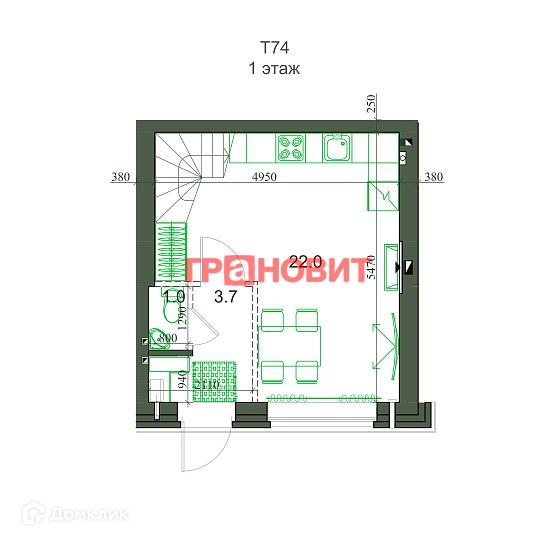 Общая площадь 75 м2