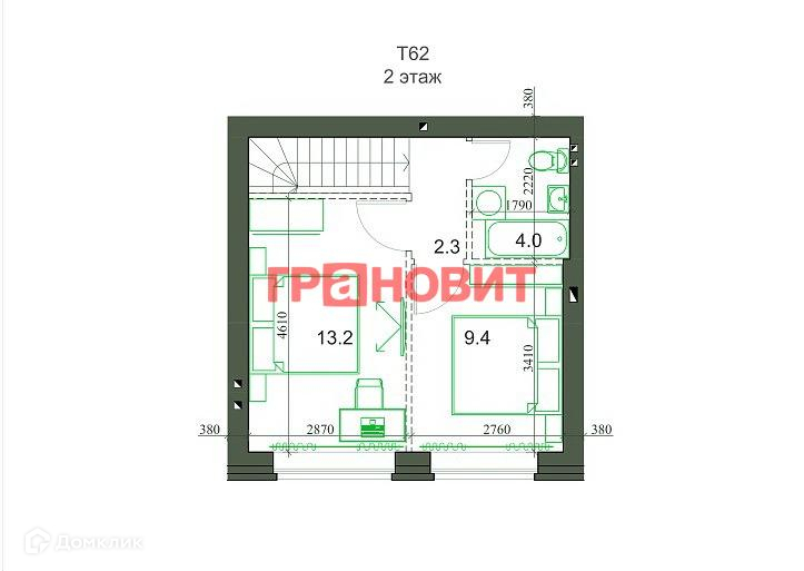 Общая площадь 62.3 м2