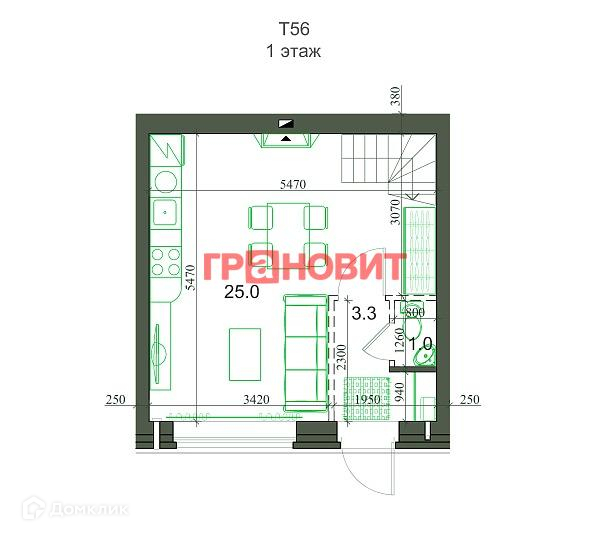 Общая площадь 54 м2