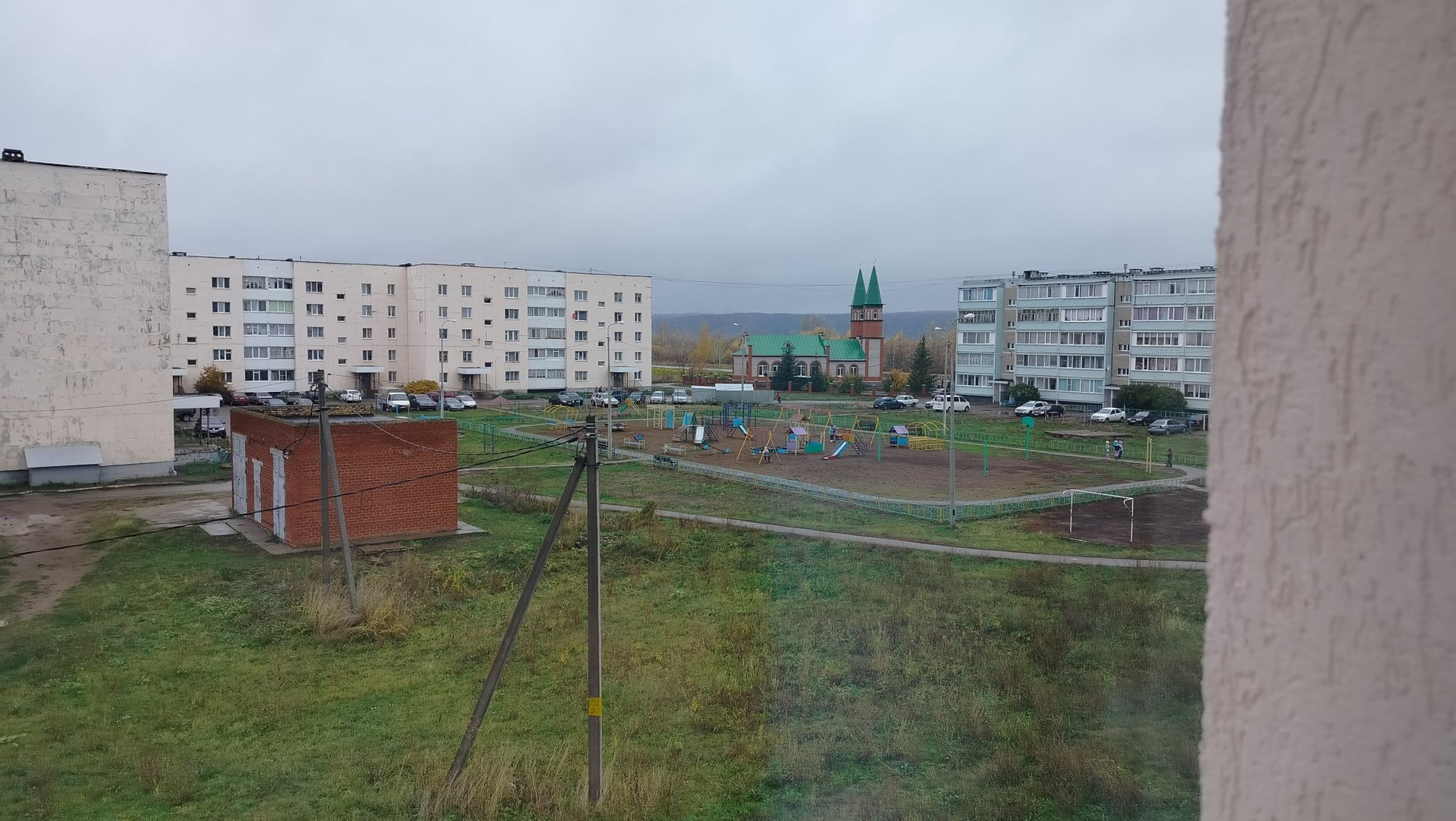 За домом детская площадка.