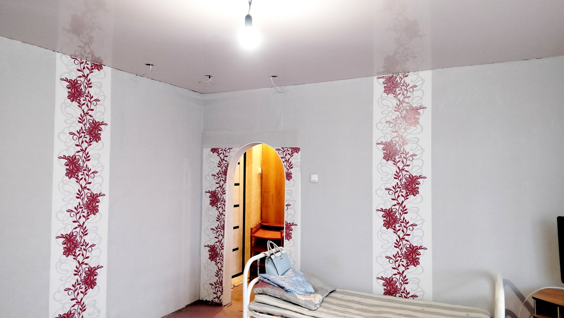 В зале натяжной потолок.