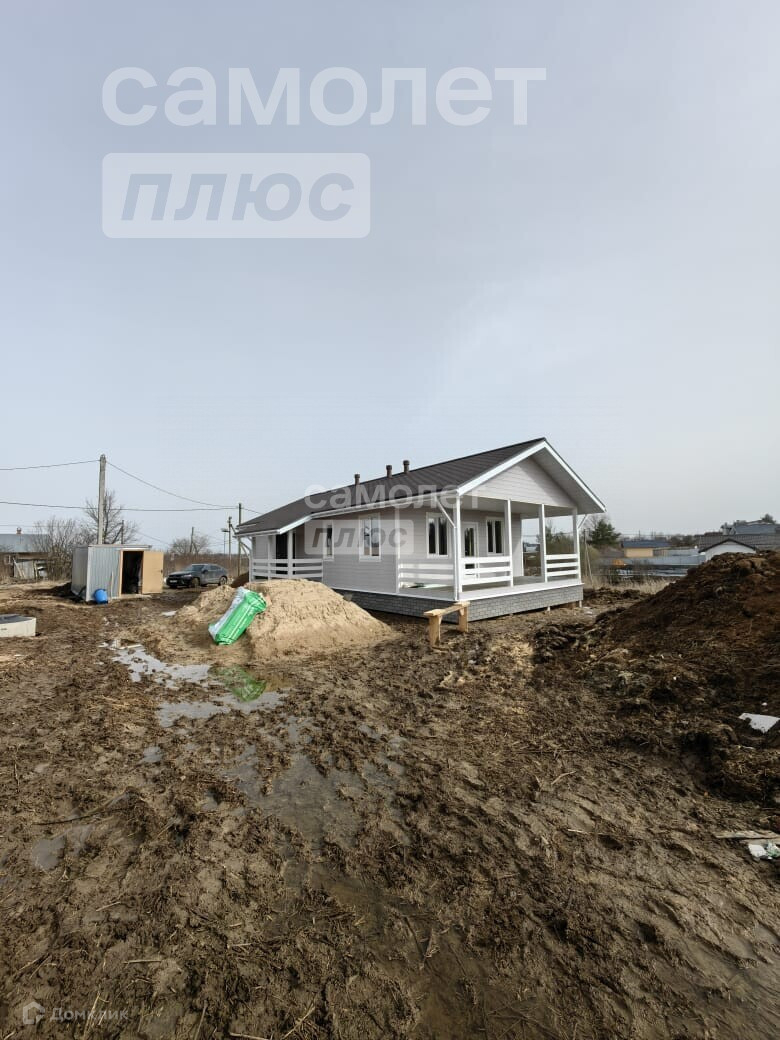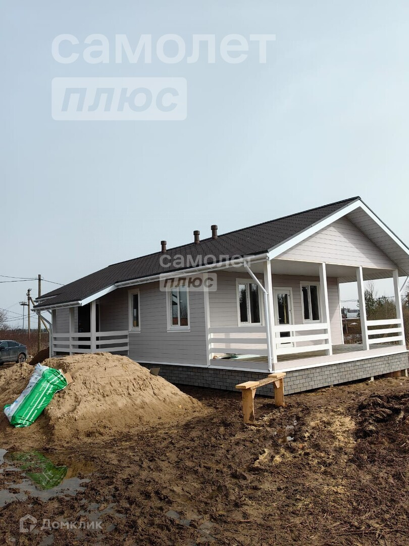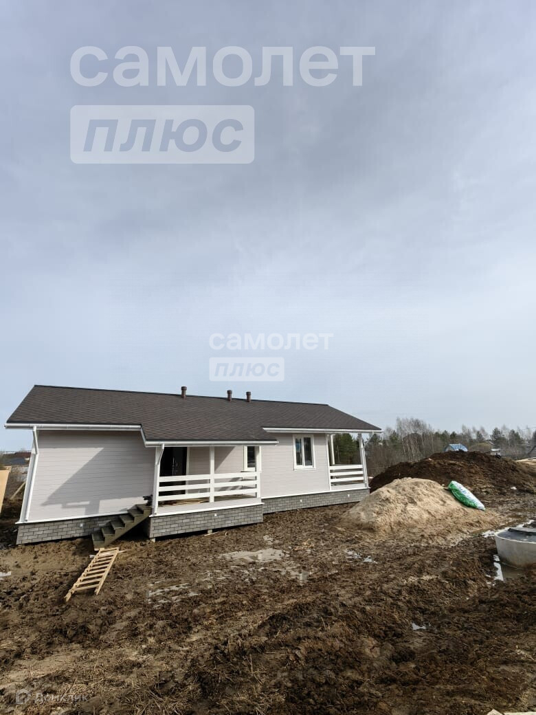 Арт. 67634782 Дом в состоянии . Дом каркасный. Утепление 200мм теплокнауф. Снаружи имитация бруса. Покрашен 2сл тиккурила. Кровля гибкая черепица. Фундамент ж.б сваи. Внутри гипсокартон. Обои, ламинат, натяжной потолок. Ванная комната- плитка. Колодец 10колец. Станция очистки. Отопление электрический котел, радиаторы.35:25:0603010:149