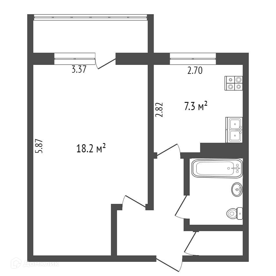Общая площадь 34.6 м2