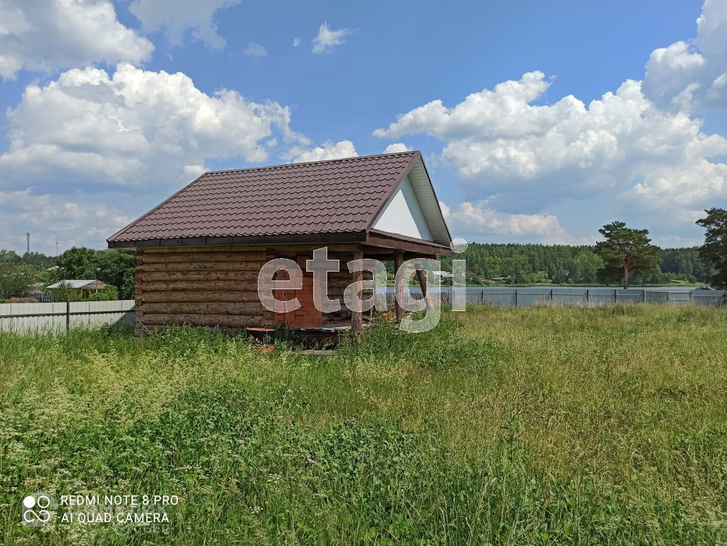 Участок огорожен профильным листом. На участке также построена баня. Рядом находится лесной массив с разнообразием грибов и ягод, озеро с песчаным пляжем. Пляж оборудован столиками с лавочками.