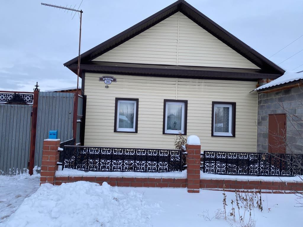 Продам дом. В доме газ. Дом 79 кв.м., 4 комнаты, большая кухня 18 кв.м., санузел в доме (туалет, ванна). Дом шлакоблочный, кухня как пристрой к дому из кирпича, фундамент ленточный, крыша черепица, облицовка дома сайдинг, в доме есть сухой погреб, дом очень теплый, пластиковые окна, в доме остается мебель. Участок 9 соток, на участке 2 гаража (железный и капитальный), баня, 2 сарая, забор из профнастила. Документы все готовы к продаже, один взрослый собственник, никто не прописан, без обременений, ключи в день расчета.