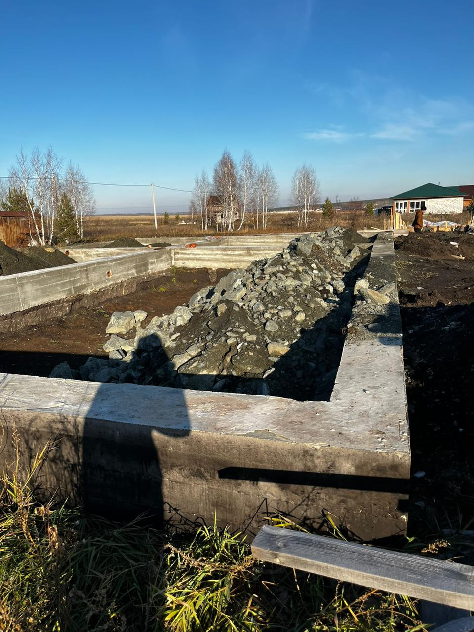 Участок 15 соток, правильной прямоугольной формы, межевание проведено, есть свайно-ростверковый фундамент под жилой дом 140 кв.м.