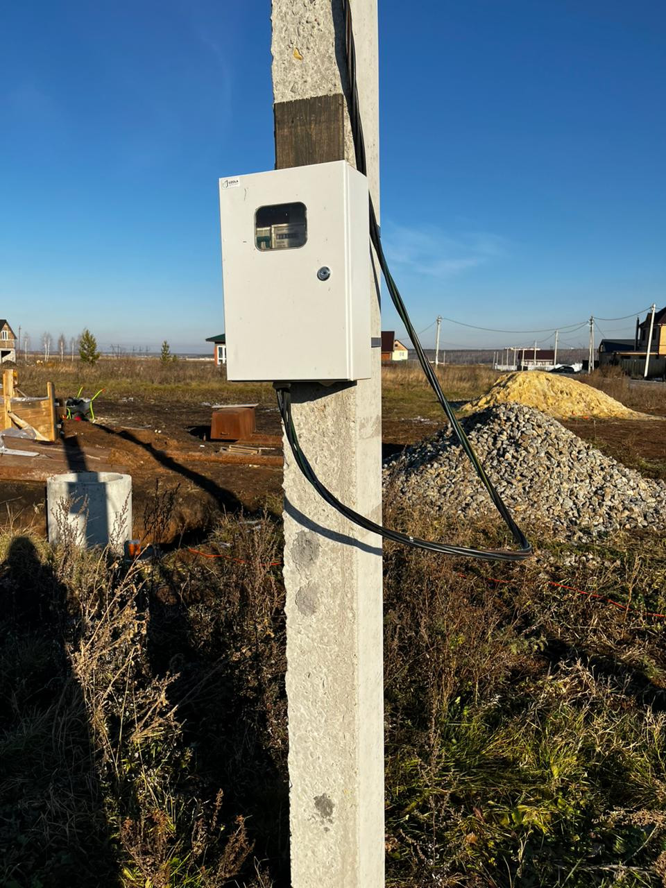 Электричество подключено, газ проходит по участку.