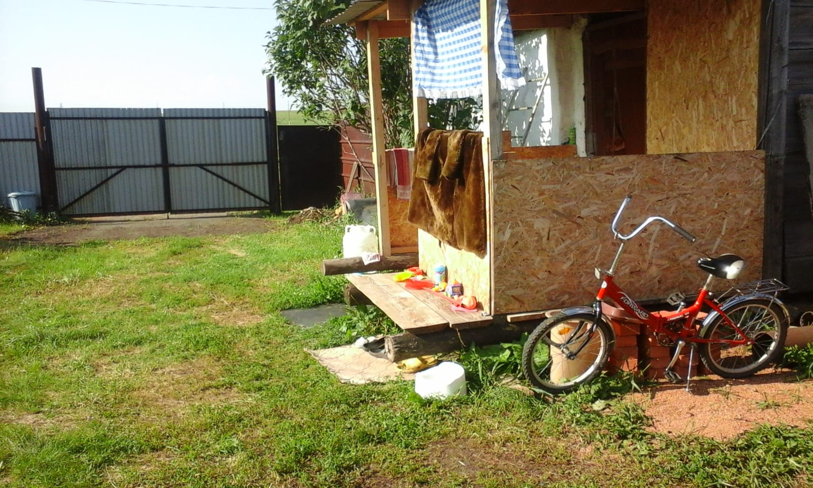 Участок ухожен, со всех сторон огорожен забором.