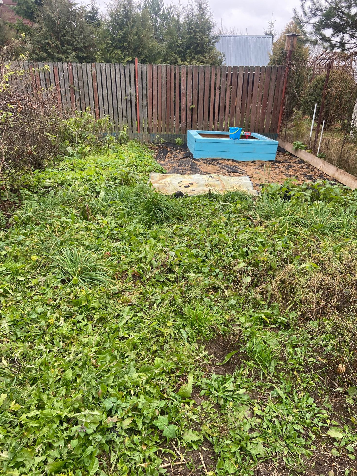 Участок ровный , огорожен забором, на участке оборудована новая детская песочница, есть место для зоны отдыха