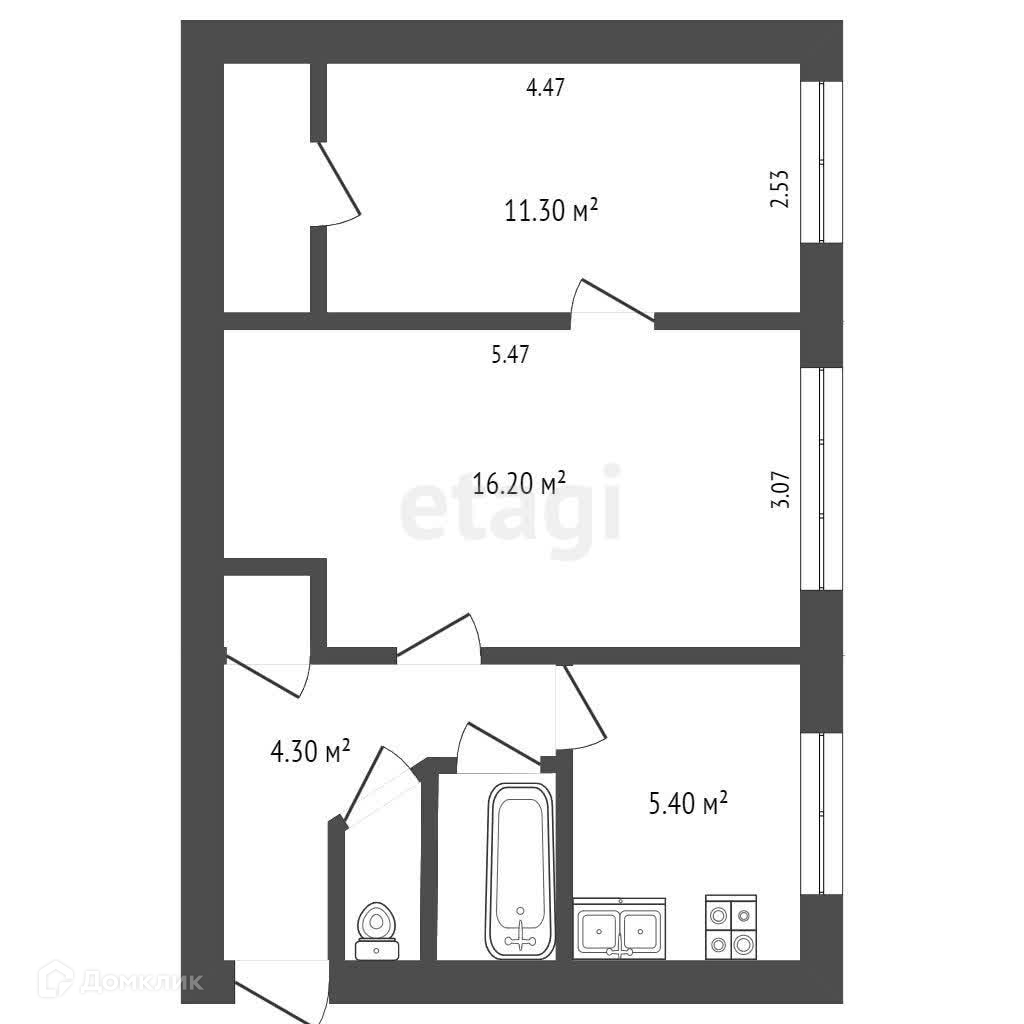 Общая площадь 42.8 м2