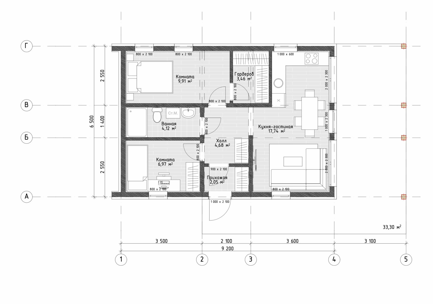 Общая площадь 60 м2