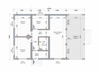 Вашему вниманию представлен прекрасный каркасный дом площадью 110м! В доме две просторных спальни по 11м, большая кухня-гостиная 23м и кабинет. Кабинет можно переделать в дополнительную спальную комнату или гардероб. Санузел совмещенный. Во всем доме увеличенные окна, а также панорама в кухне-гостиной. Терраса 27м позволит вам проводить уютные вечер... |