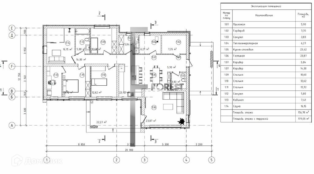 Площадь этажа с террасой: 179,05кв.м