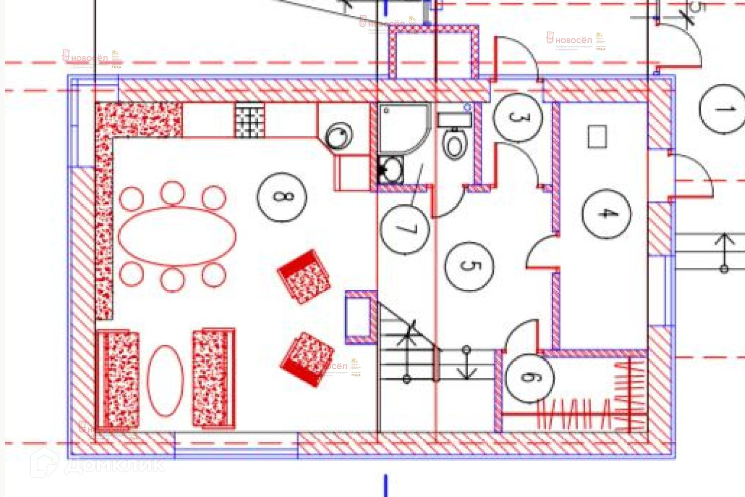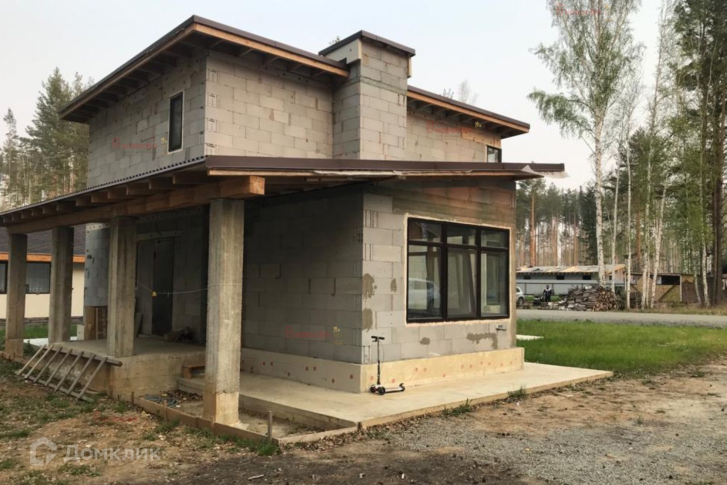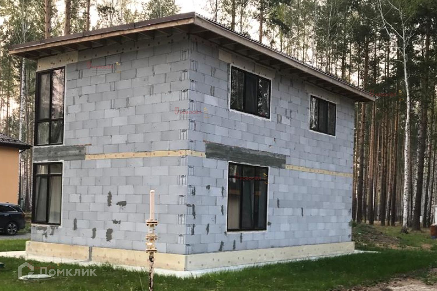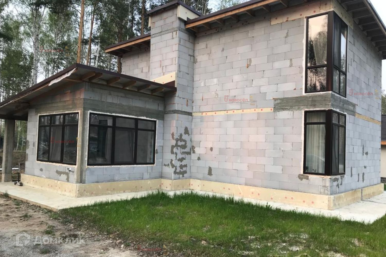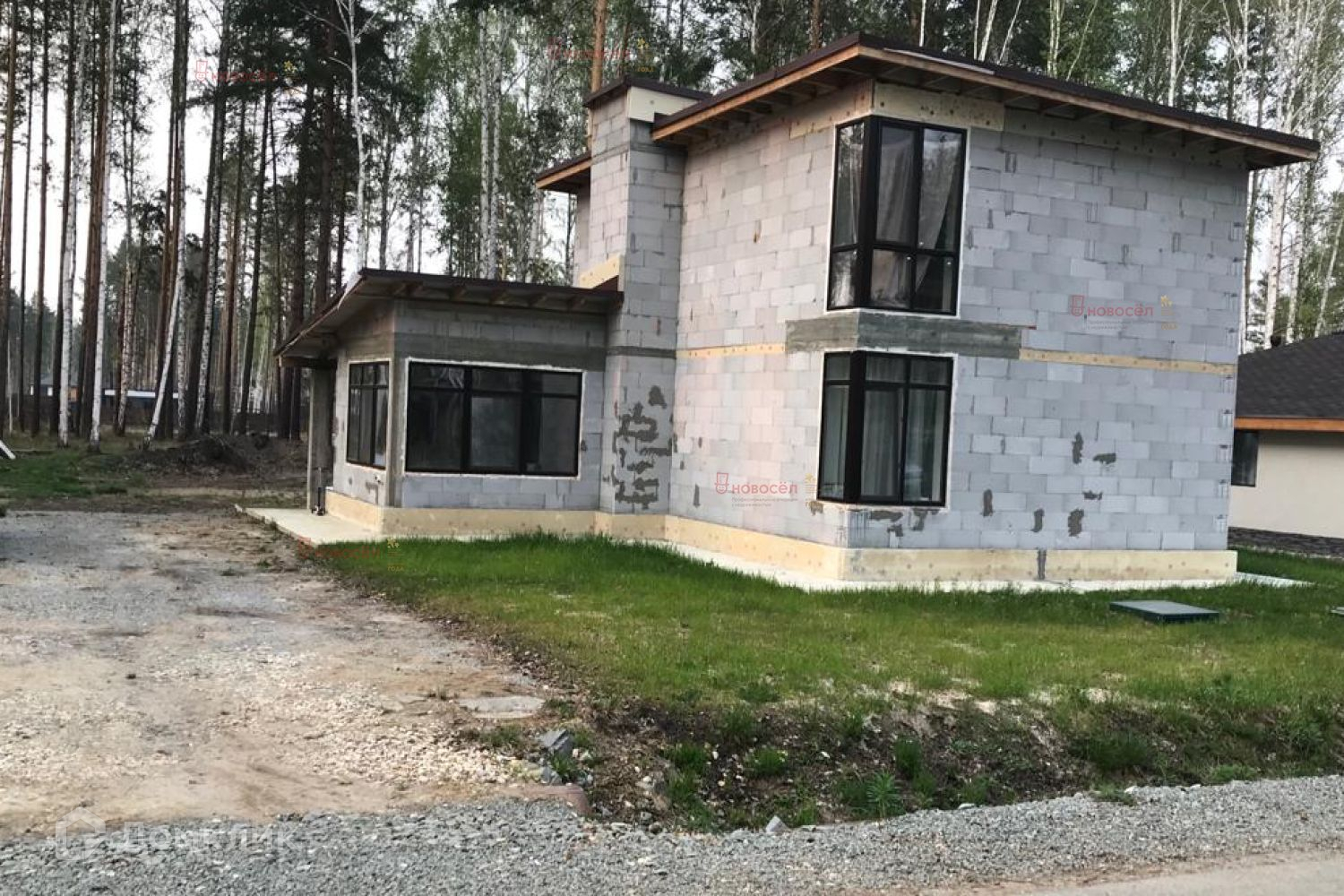 Конструктив дома: фундамент-монолитный ростверк по сваям, стены-твинблоки t=300 мм, перегородки газоблок 100 мм, перекрытие-железобетон. Сети: центральный водопровод, канализация-септик, электричество 380, газоснабжение-точка подключения на участке.