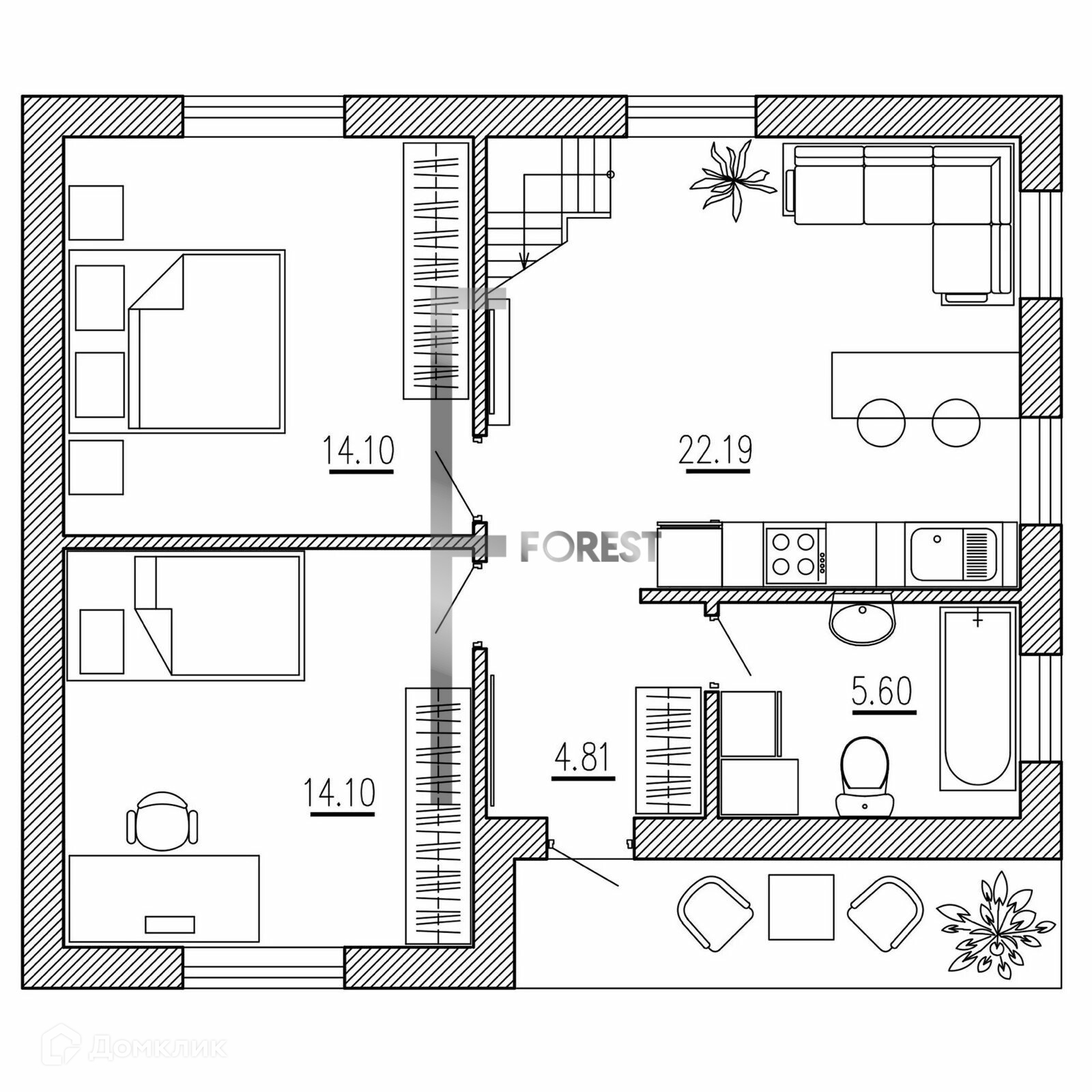 Дом из качественных материалов, с продуманной планировкой: три жилые комнаты- по 14 кв.м, + 41 кв.м. (2 этаж) кухня-гостиная-22,2 кв.м., санузел-котельная-5,6 кв.м., прихожая -4,8 кв.м.
