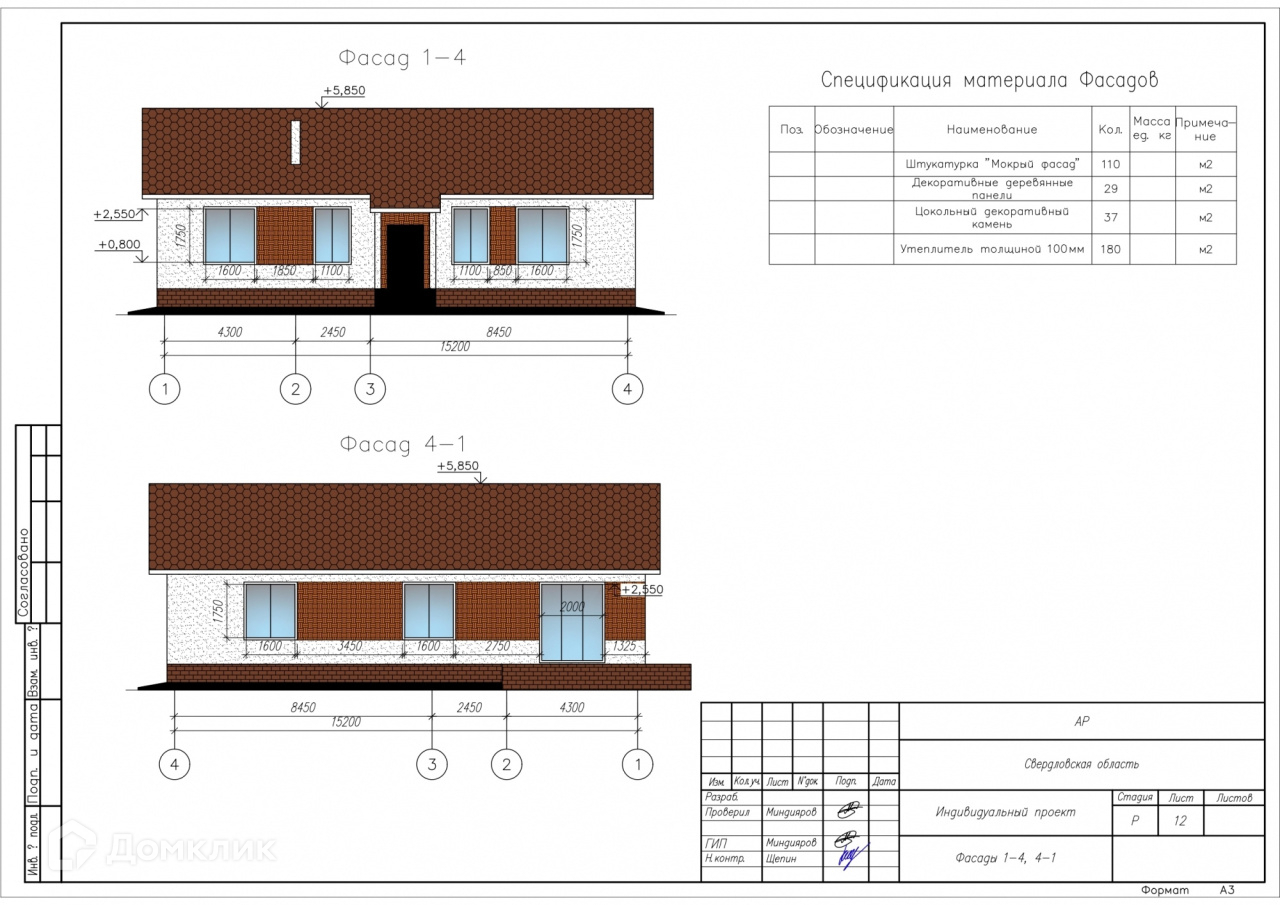 Стены из газоблока 300 мм, с утеплением на 50 мм,