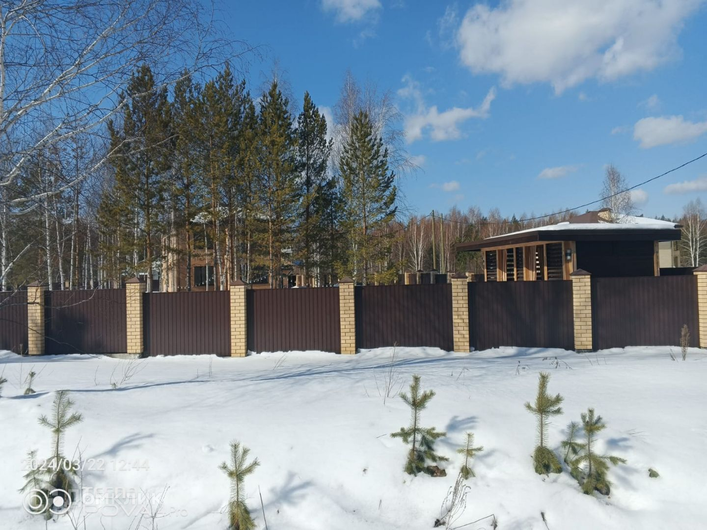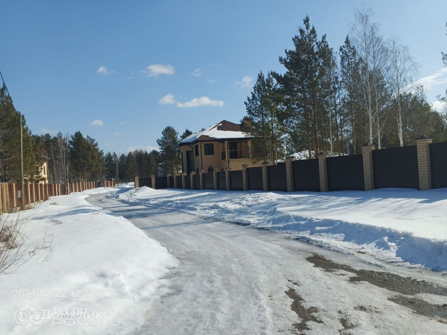 Участок правильной формы находится в экологически чистом месте, вокруг смешанный берёзовый и сосновый лес, озеро в шаговой доступности, к участку проведены электричество и газ, территория находится под охраной. На территории загородного комплекса имеются домовладения с круглогодичным проживанием.