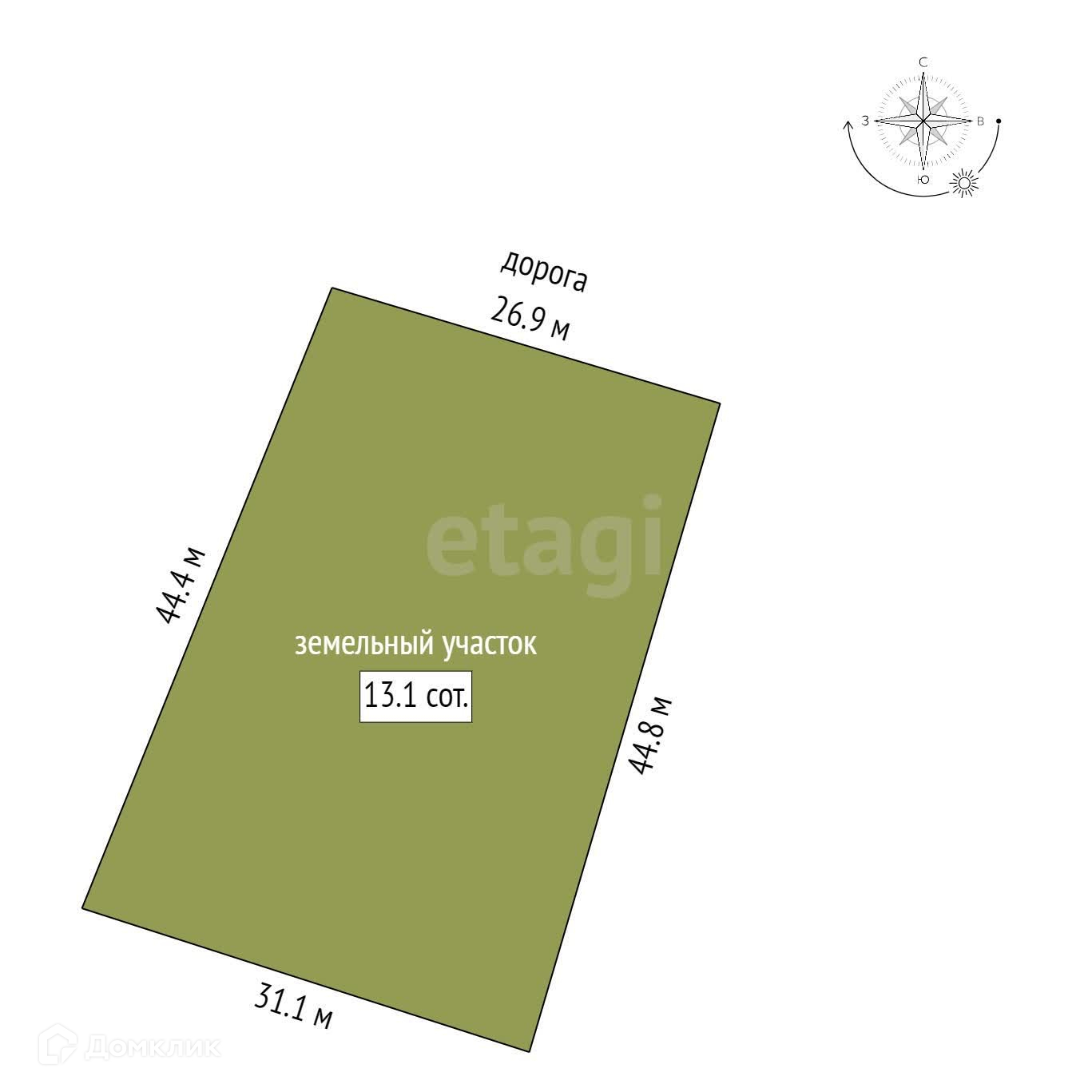 Площадь участка 13.1 сот.