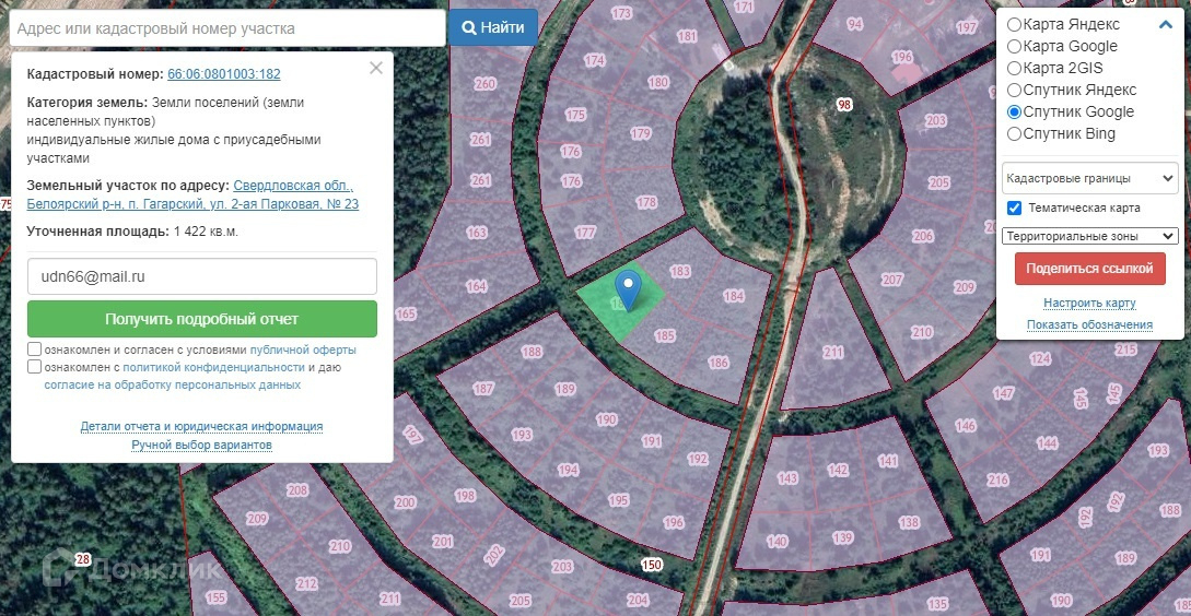 - Кадастровый номер участка: 66:06:0801003:182