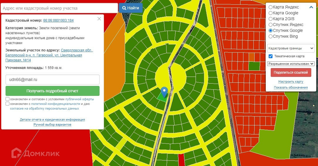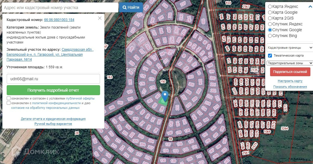 - Кадастровый номер участка: 66:06:0801003:184