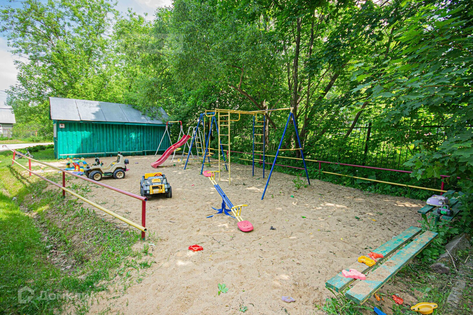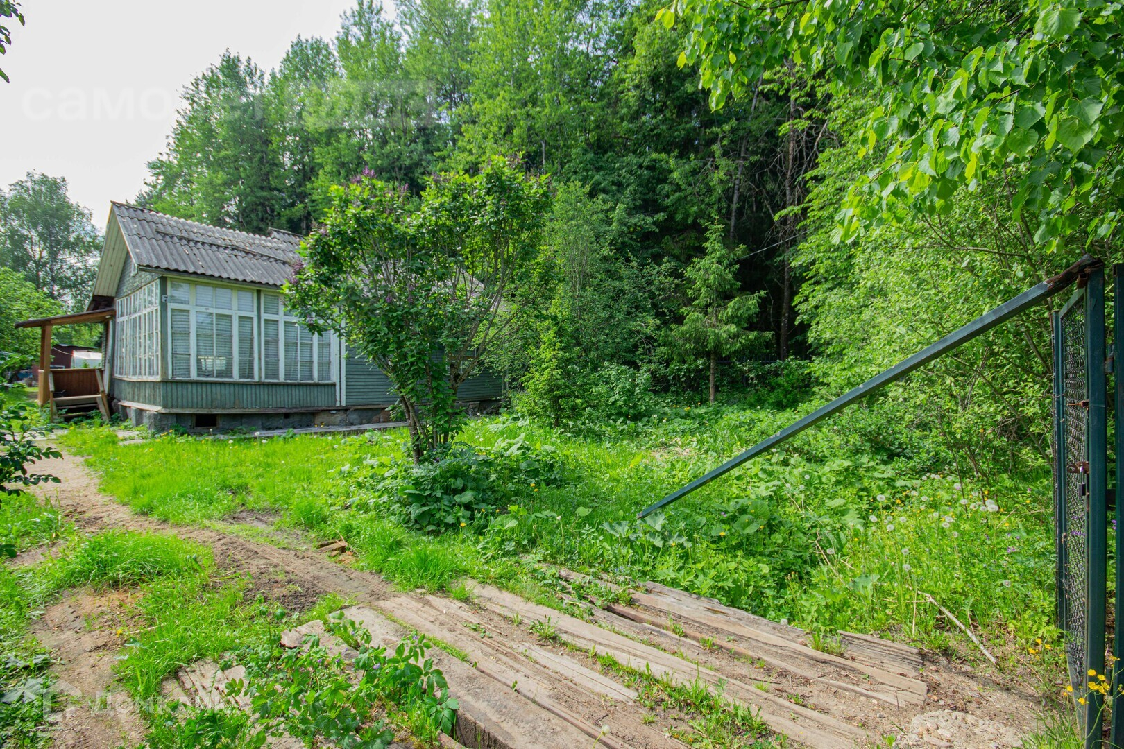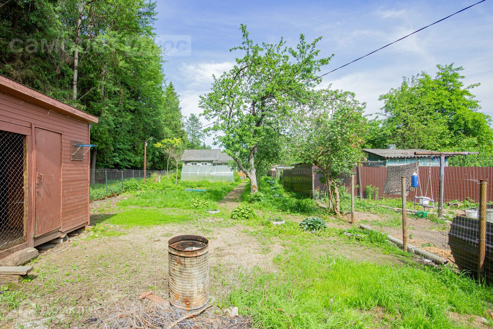 - Участок огорожен сетчатым забором;