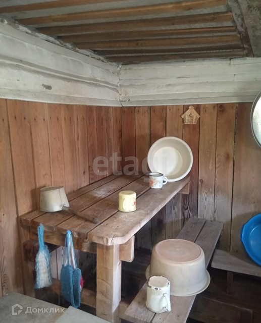 Построена двухэтажная баня из лиственницы, с навесом вдоль бани. Новый туалет, углярка и дровник, хозяйственный блок, теплица. Небольшой водоем, который можно использовать для полива.