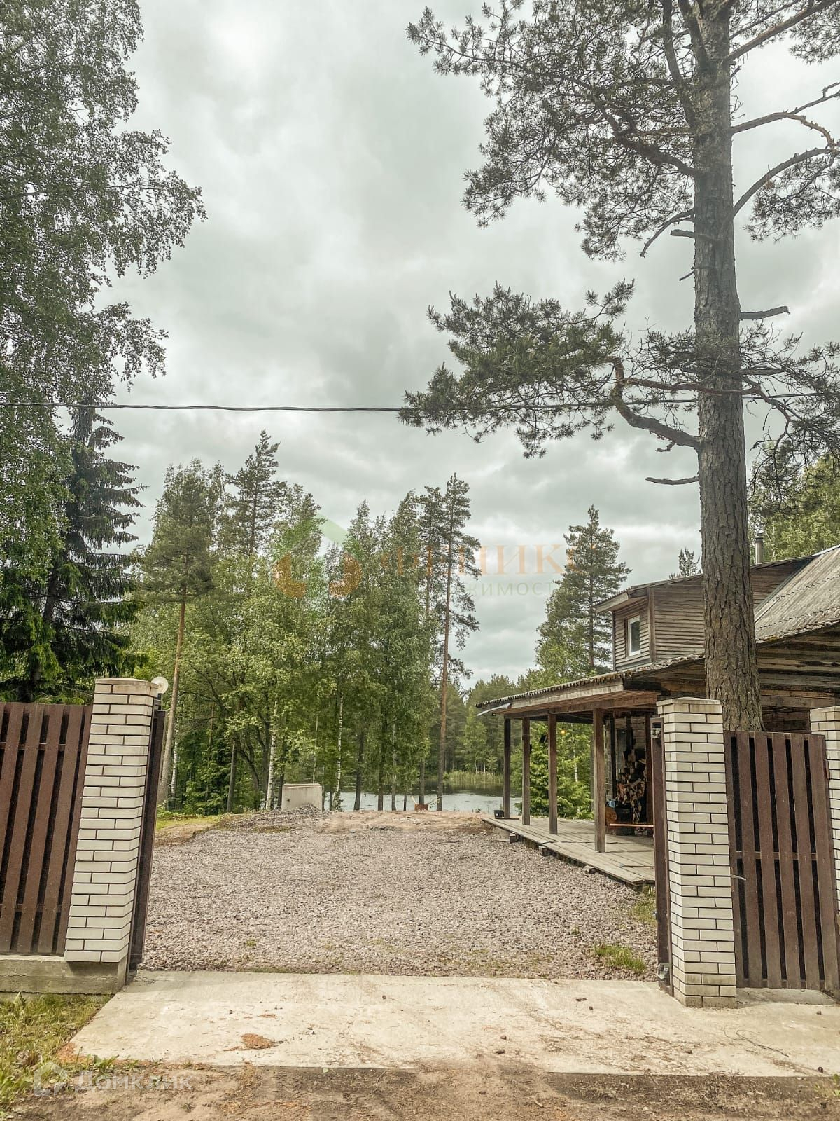 Участок расположен на первой береговой линии с собственным выходом к воде. Участок сухой ровный разноуровневый с подпорными стенами из габионов и каменных плит. На участке и вокруг вековые сосны и ели. Огражден капитальным забором.