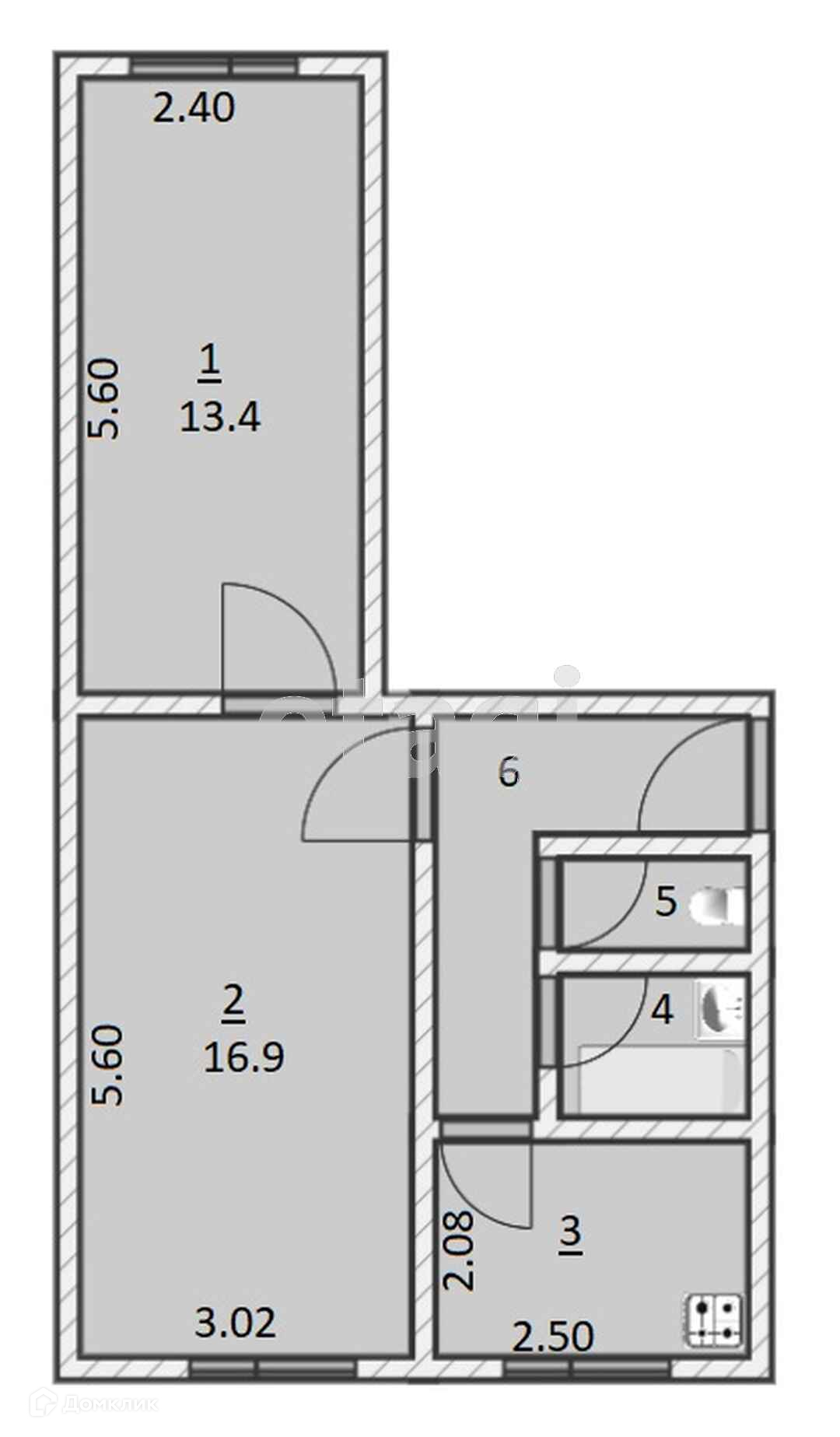 2-комнатная квартира, 47 м2, этаж 1 / 5, на продажу в посёлке Газопровод, Новая улица, 9