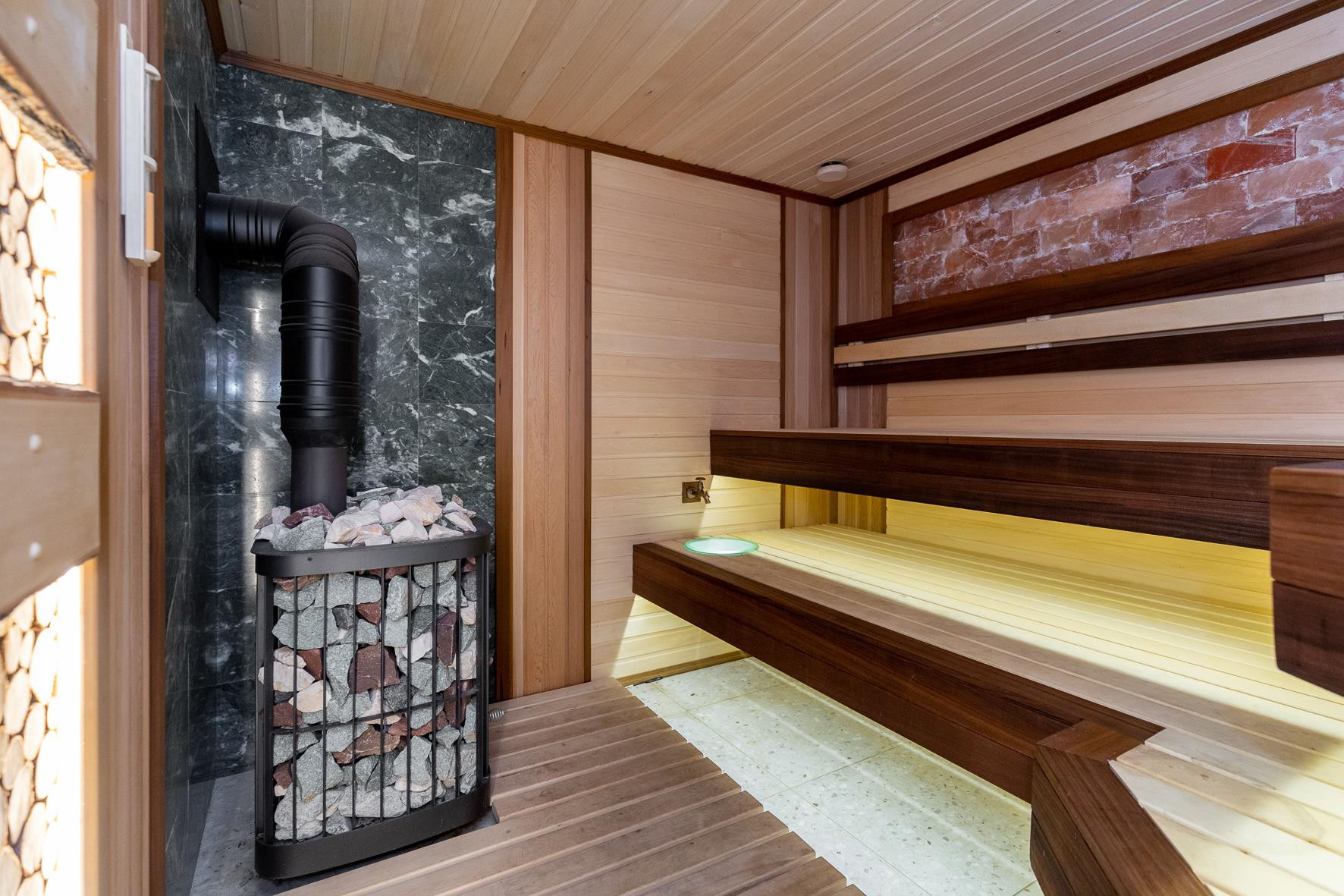 Одна из мастер-спален занимает весь третий этаж, великолепно сочетается со спортивно-тренажерной зоной и имеет просторную гардеробную комнату.