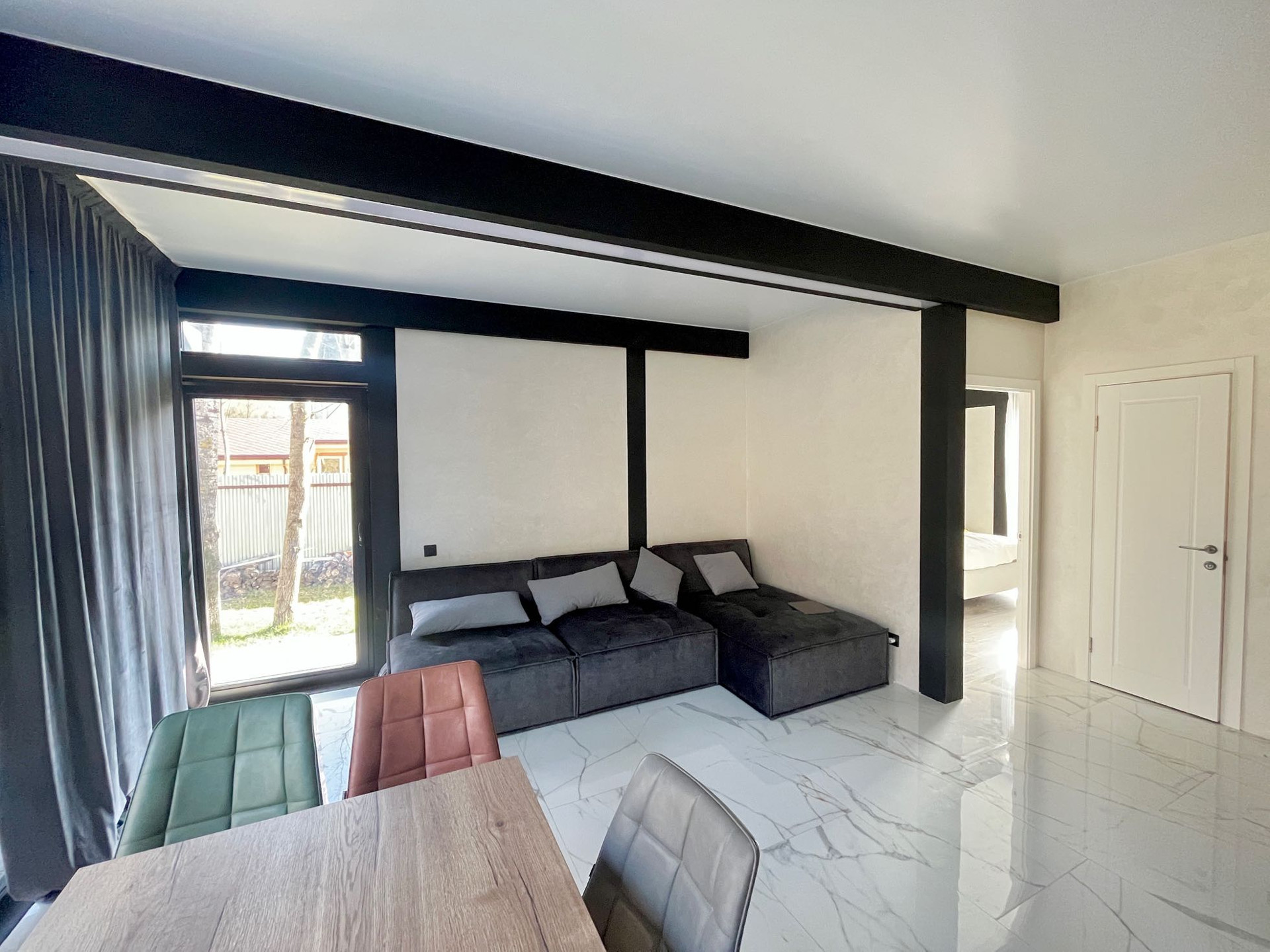 Все комнаты полностью мебелированы оборудованы мансардными окнами.