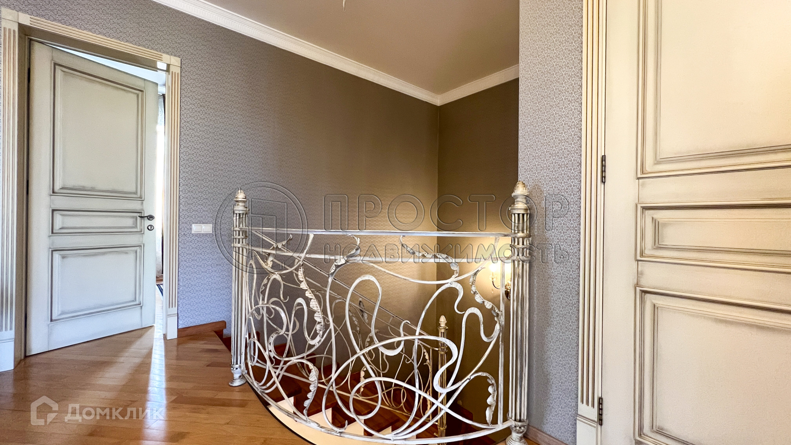 Три спальни, одна из которых с гардеробной – на втором этаже. Гостиная, просторный холл и кухня – на первом.