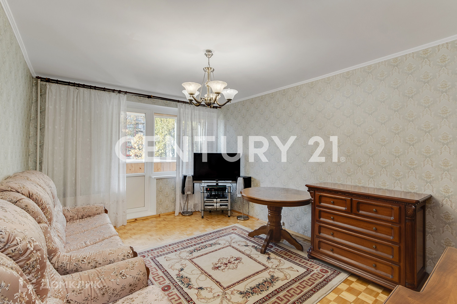 Гостиная, площадью 16.7 кв.м. с выходом на огромную застекленную лоджию, площадью 6 кв.м, окна из лоджии выходят на скверик, переходящий в лесопарковую зону, с тремя видами дорожек: для собак, велосипедов и людей