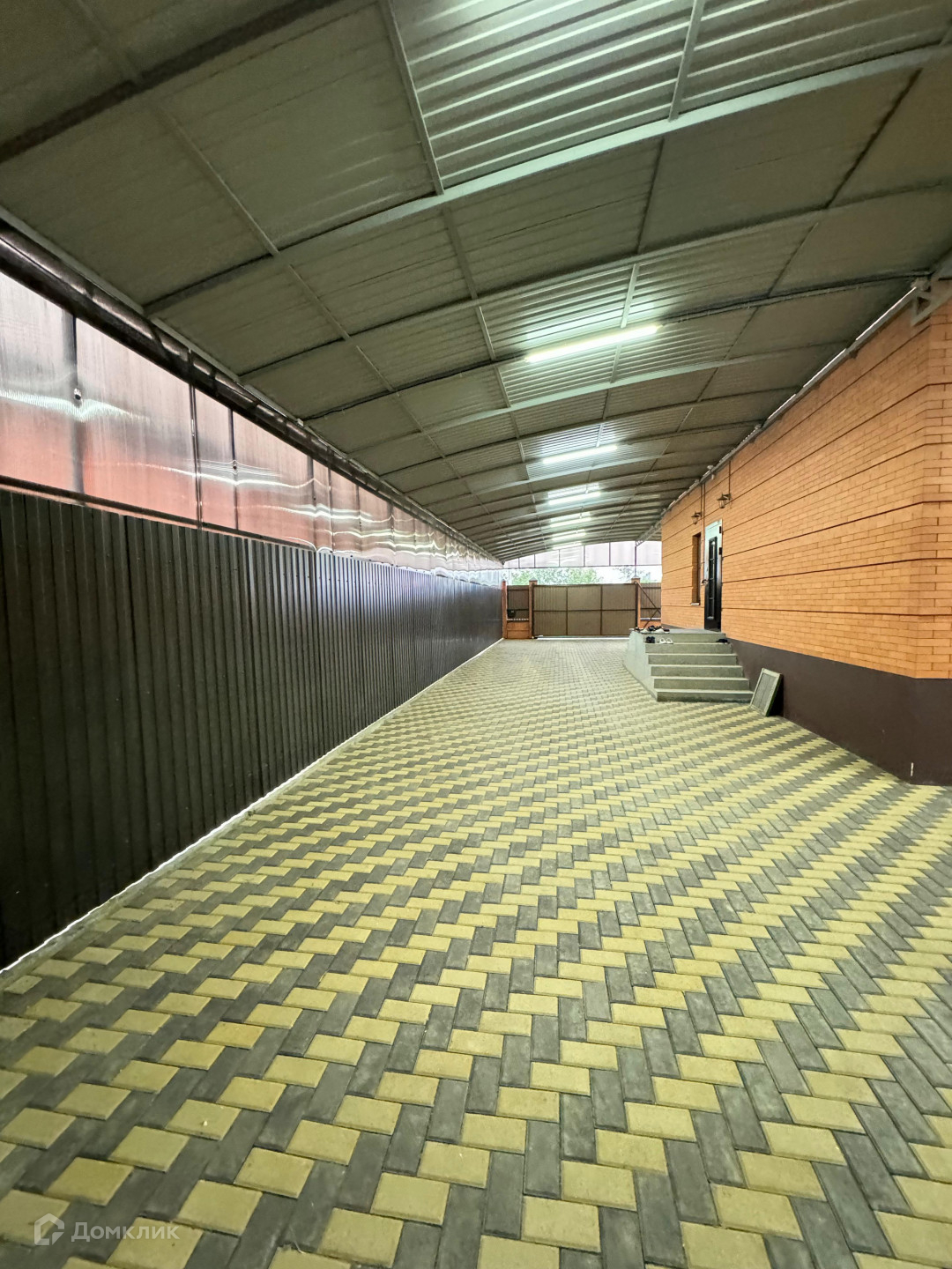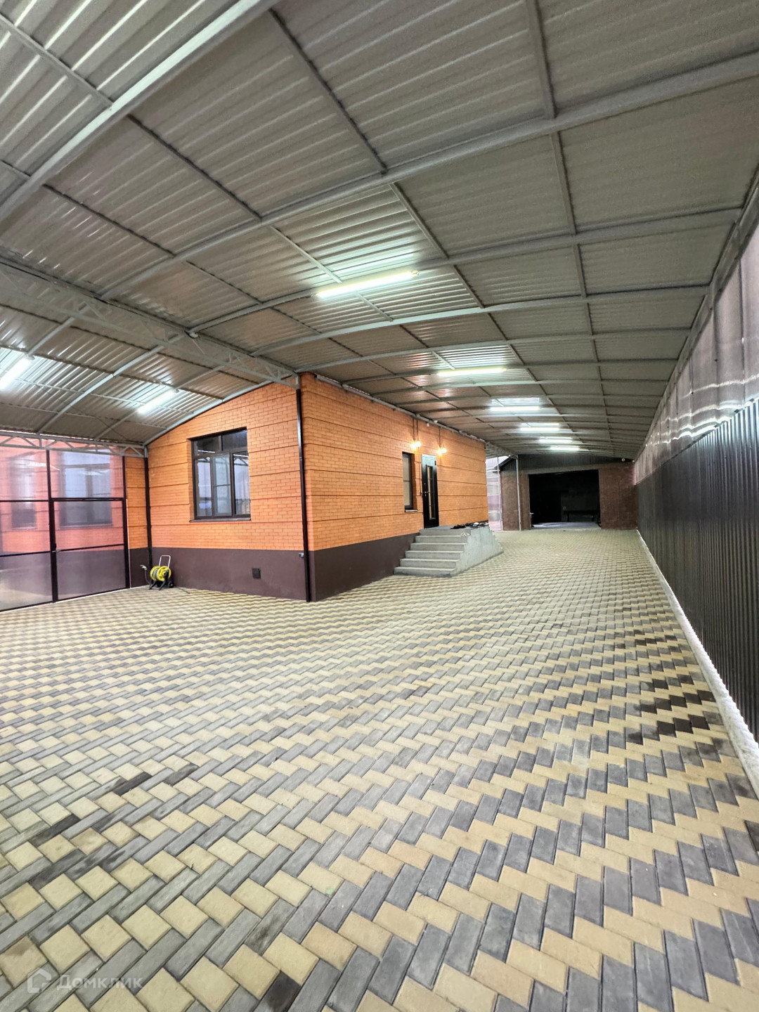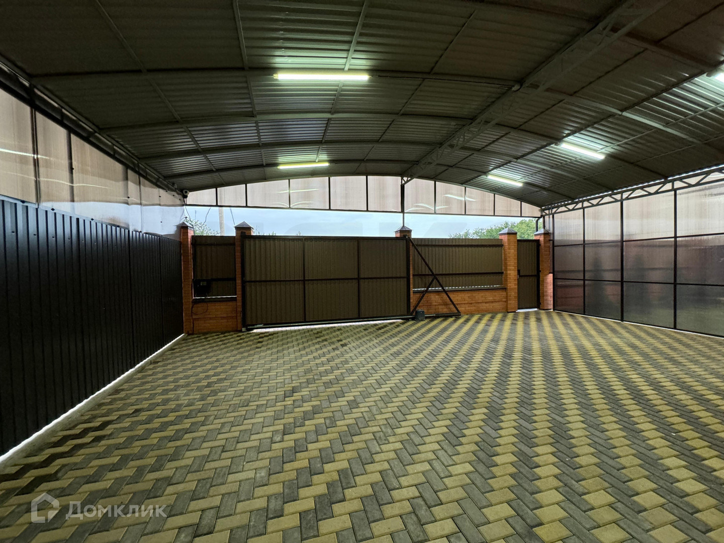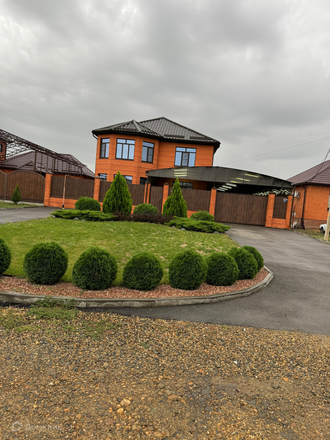 Дом также расположен на участке земли площадью 9.4 сотки, фасадный забор выполнен из того же кирпича, что и сам дом, с автоматическими откатными воротами, во дворе есть место и для парковки нескольких автомобилей, так же на всей территорий Дома ведётся видео наблюдения
