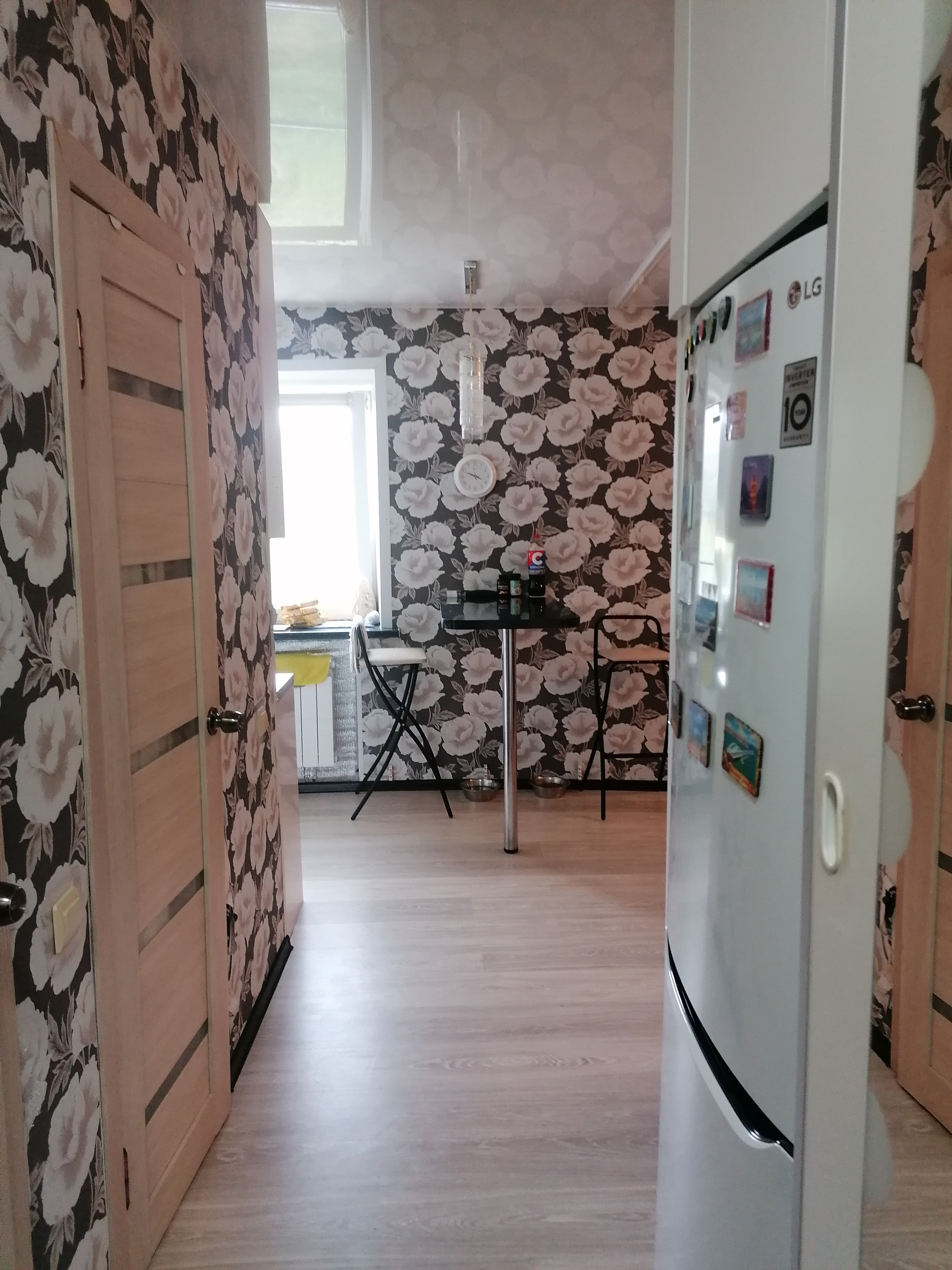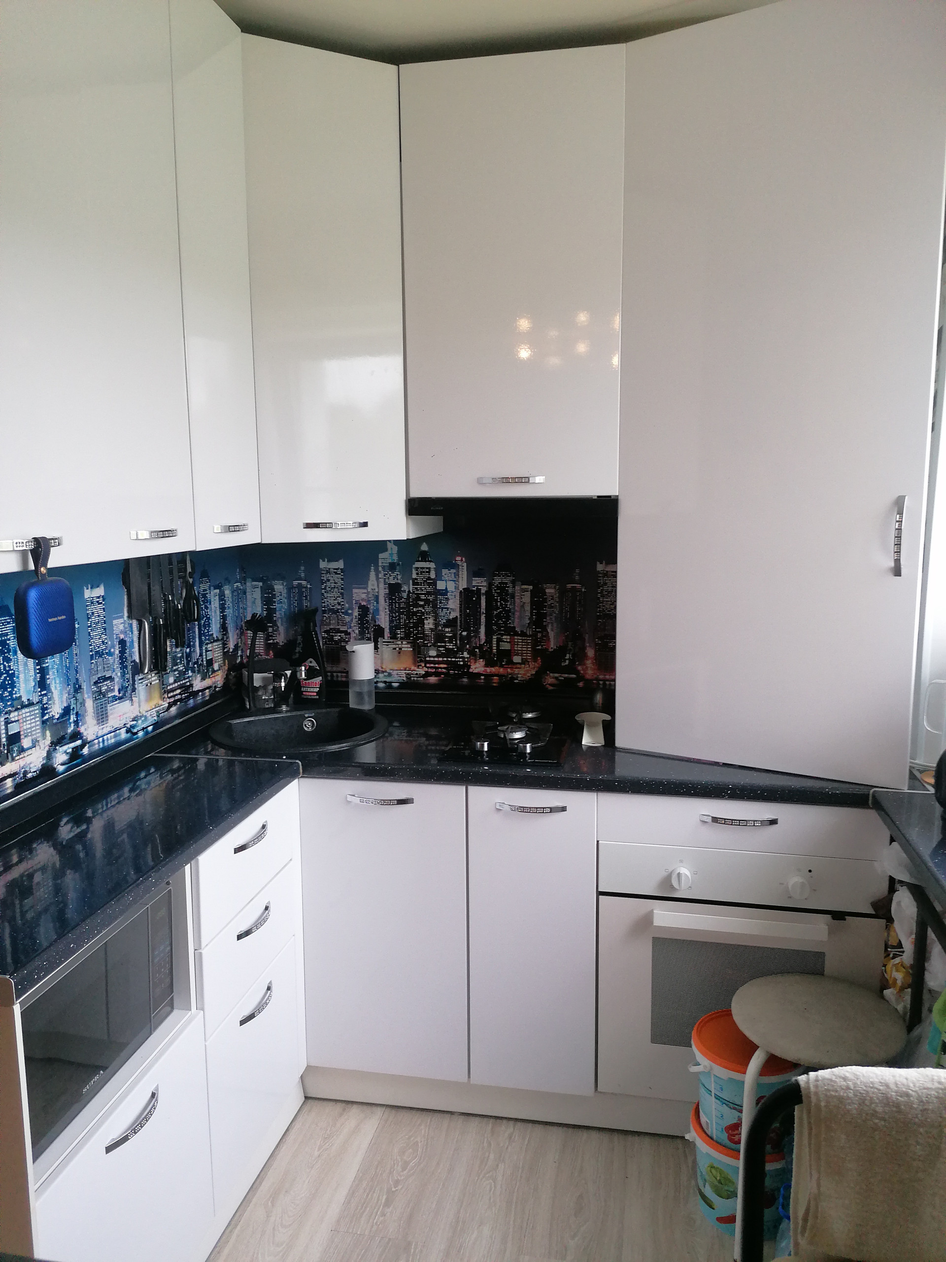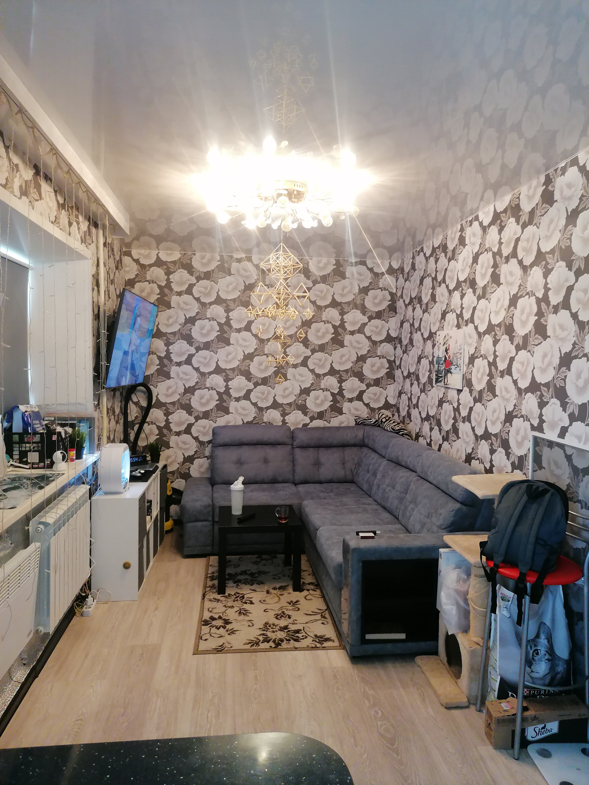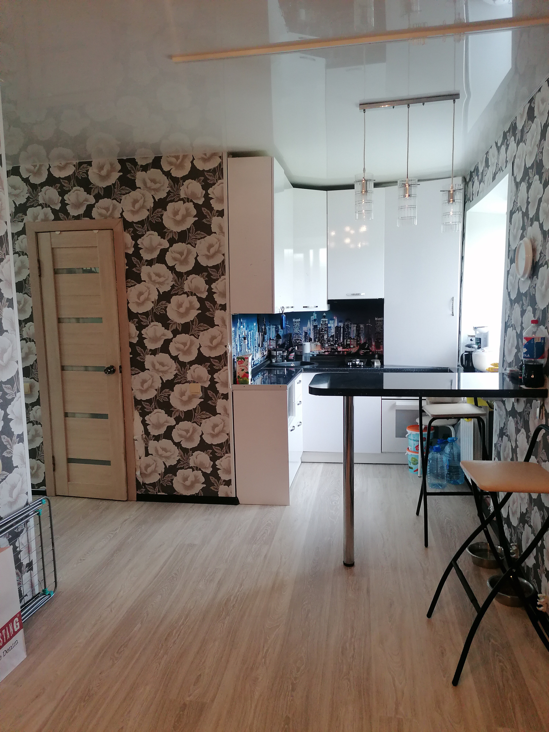 Потолки натяжные, большие пластиковые окна ( трехстворчатые )Солнечная сторона. Кухня на заказ.
