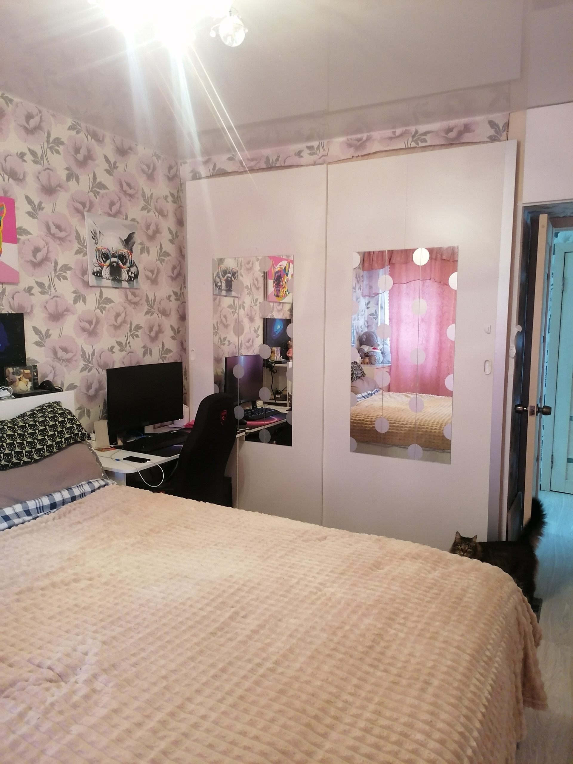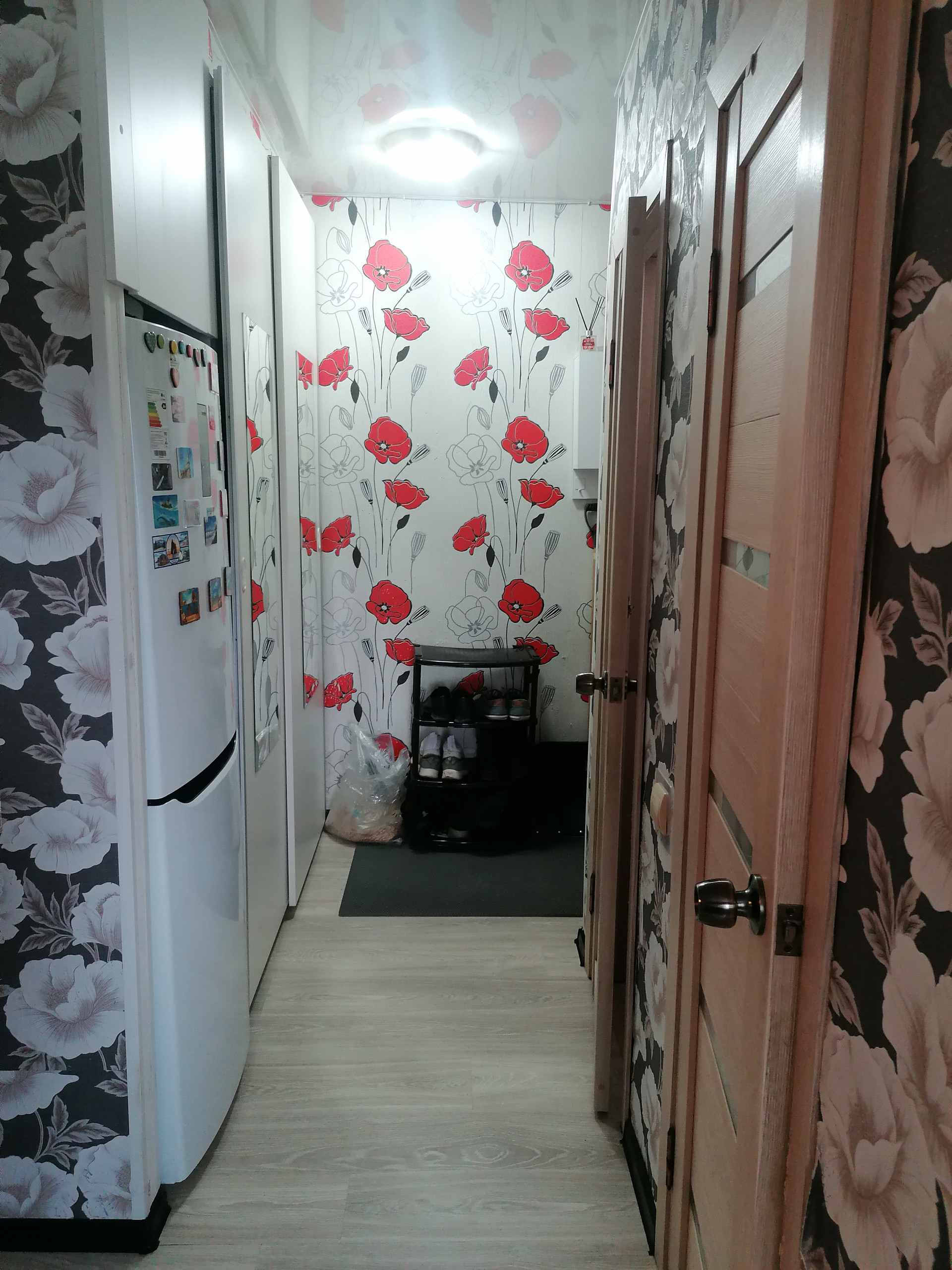 Два встроенных шкафа- в комнате и коридоре . Дорогая входная дверь фирмы Torex.