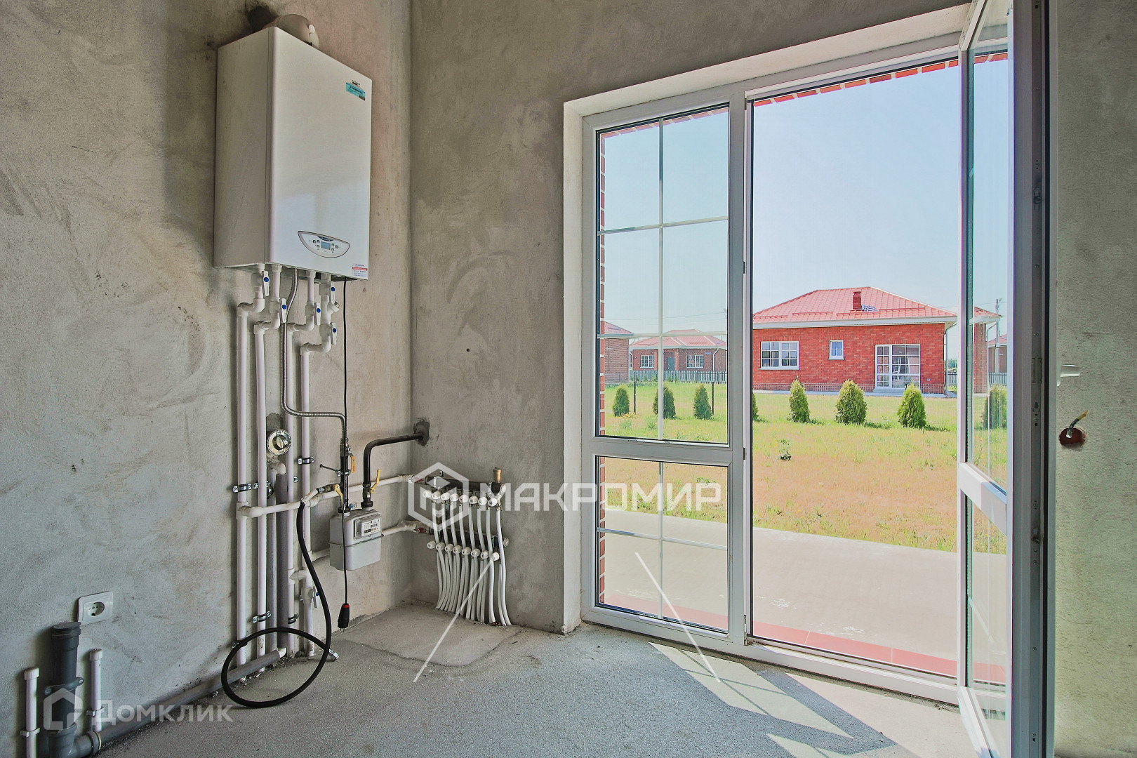 Центральное газоснабжение (двухконтурный газовый котел). Теплый пол по всей площади дома.