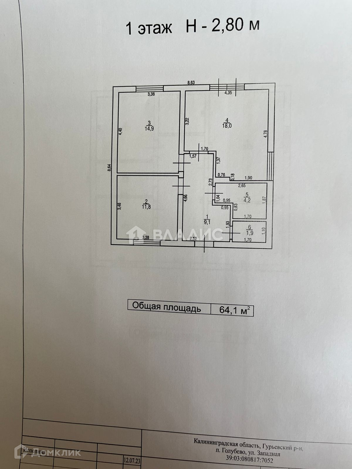 Общая площадь 64.1 м2