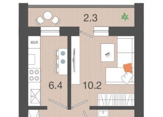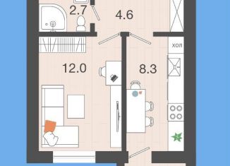 1-ком. квартира на продажу, 20.4 м2, Изумрудная улица, 25