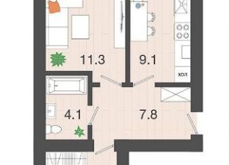 2-ком. квартира на продажу, 41.3 м2, Уютная улица