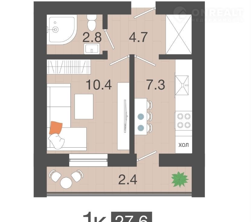 Общая площадь 27.6 м2
