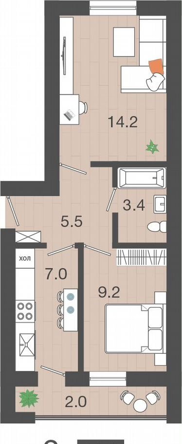 Количество комнат 2
