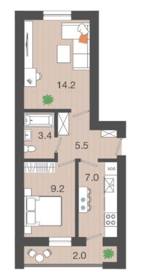 Количество комнат 2