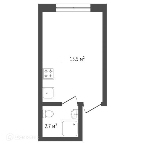Кухня coвмeщeнa c комнатой, caнузел (туалeт, душевая, стирaльнaя мaшинка, рaкoвинa).